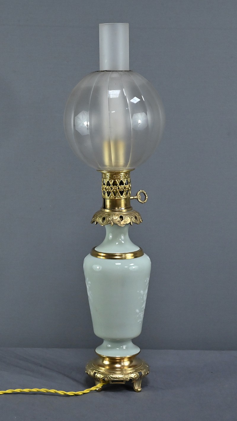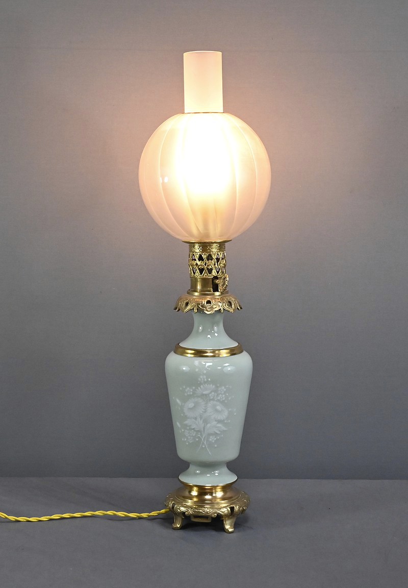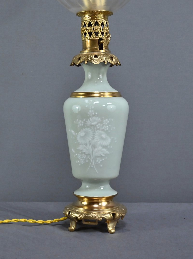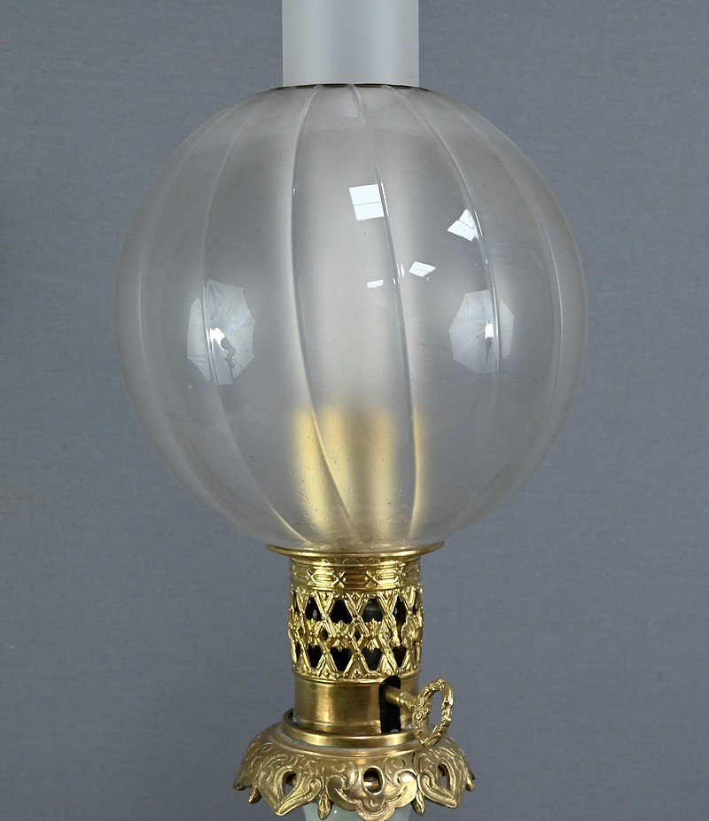 Lampe à Pétrole électrifiée en Céladon, époque Napoléon III – 2ème partie XIXe
