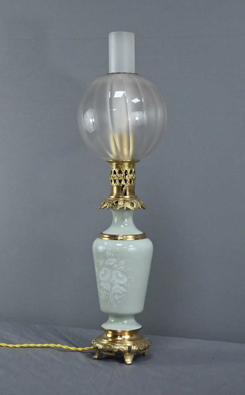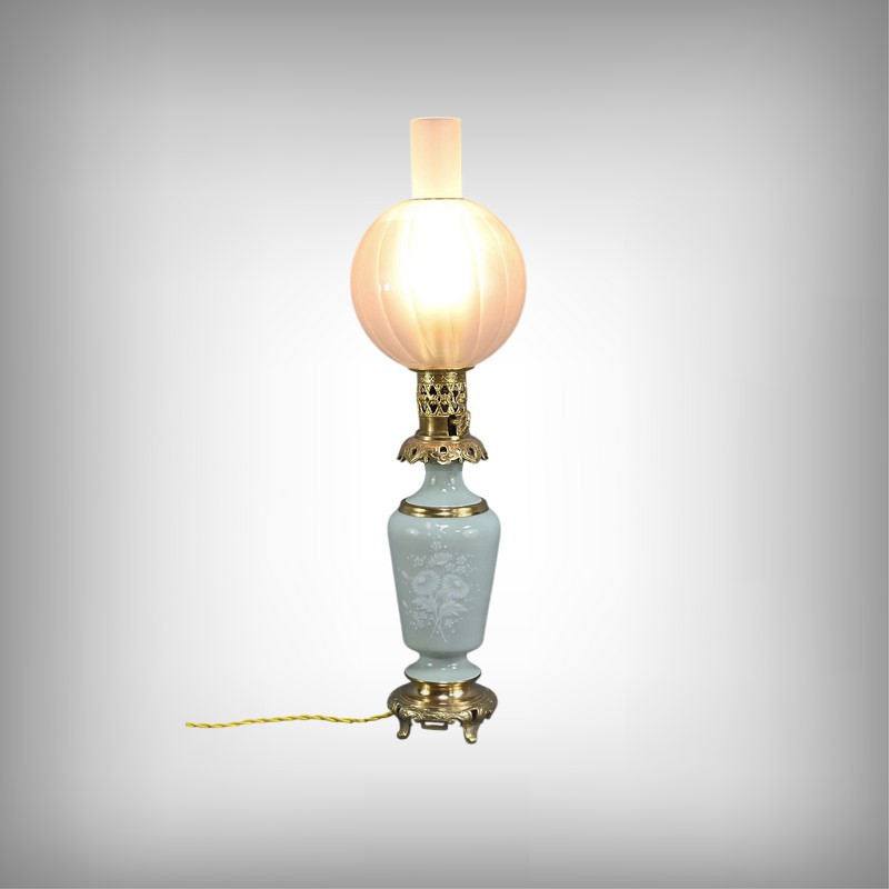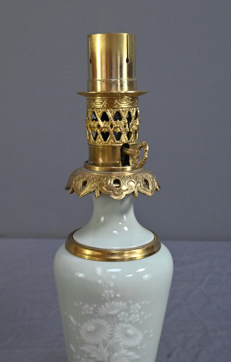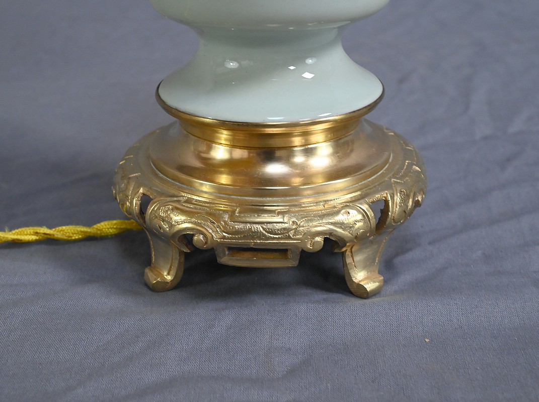 Lampe à Pétrole électrifiée en Céladon, époque Napoléon III – 2ème partie XIXe
