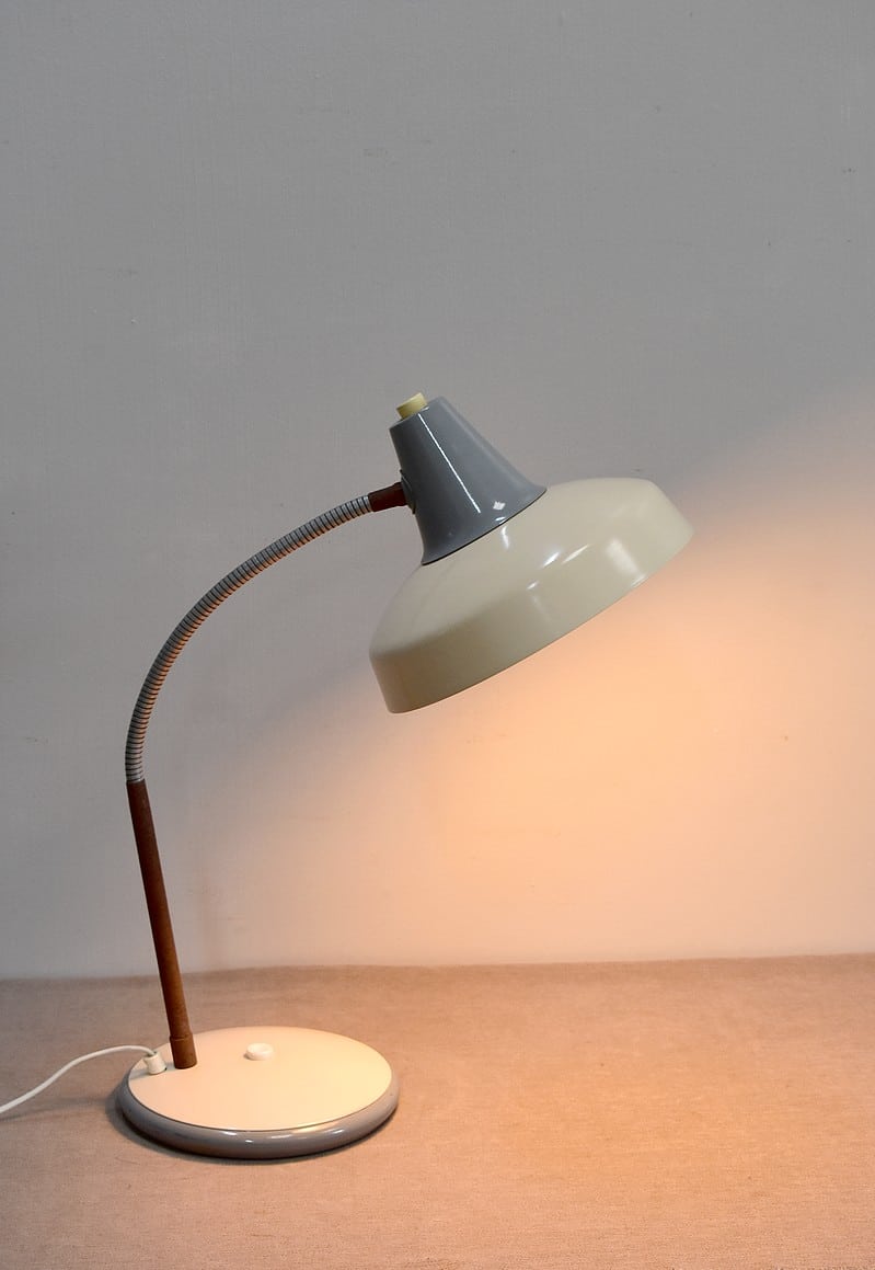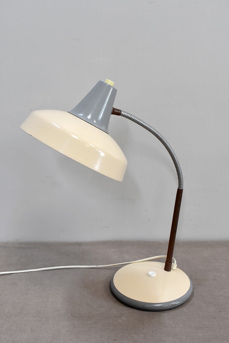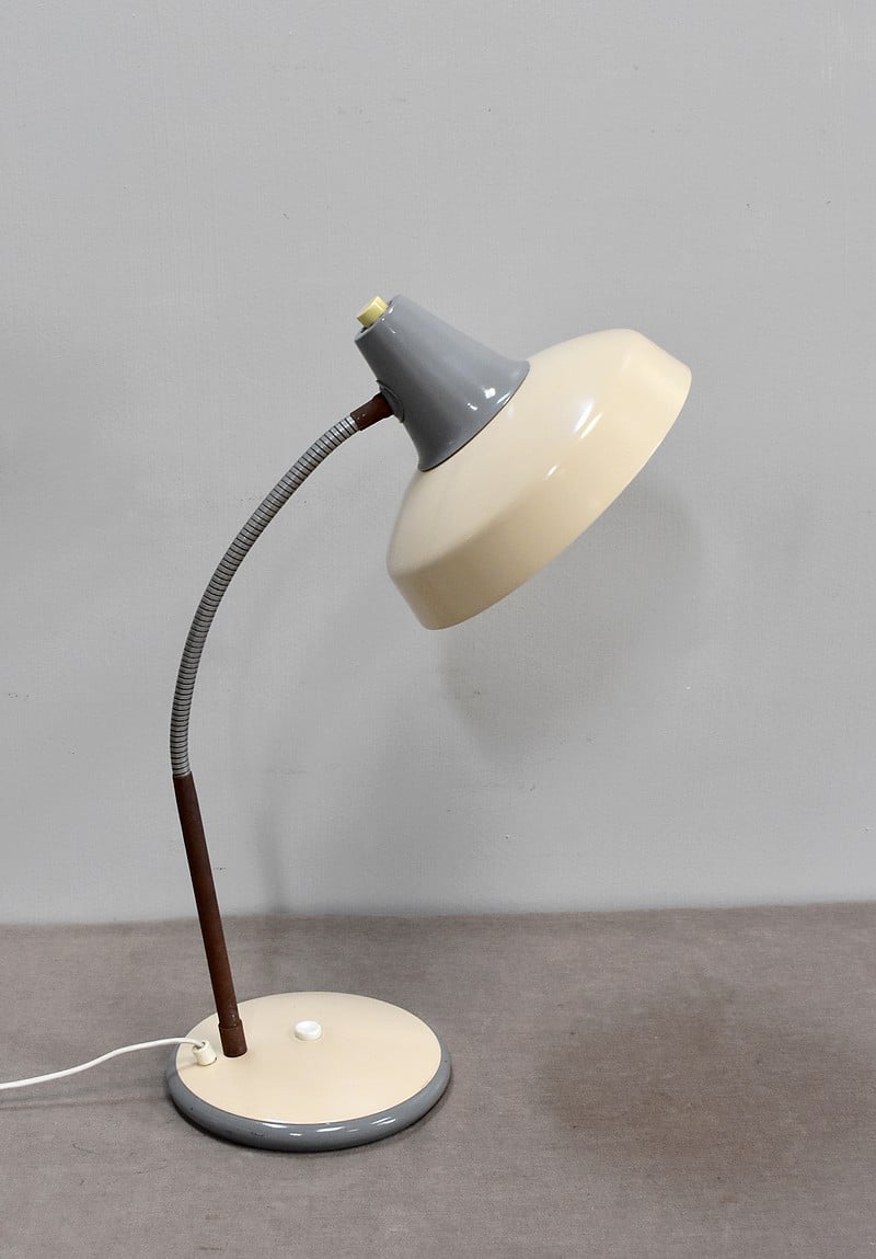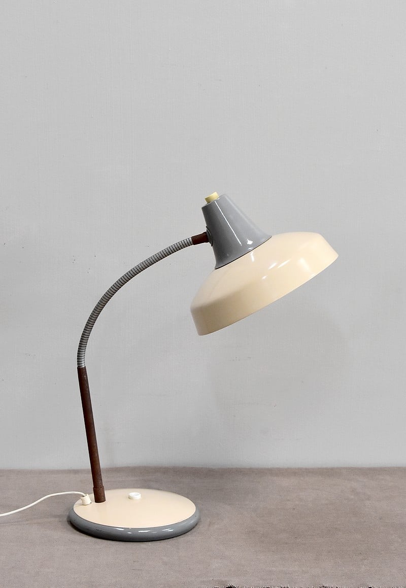 Lampe de bureau industrielle en aluminium peint électrifiée.
