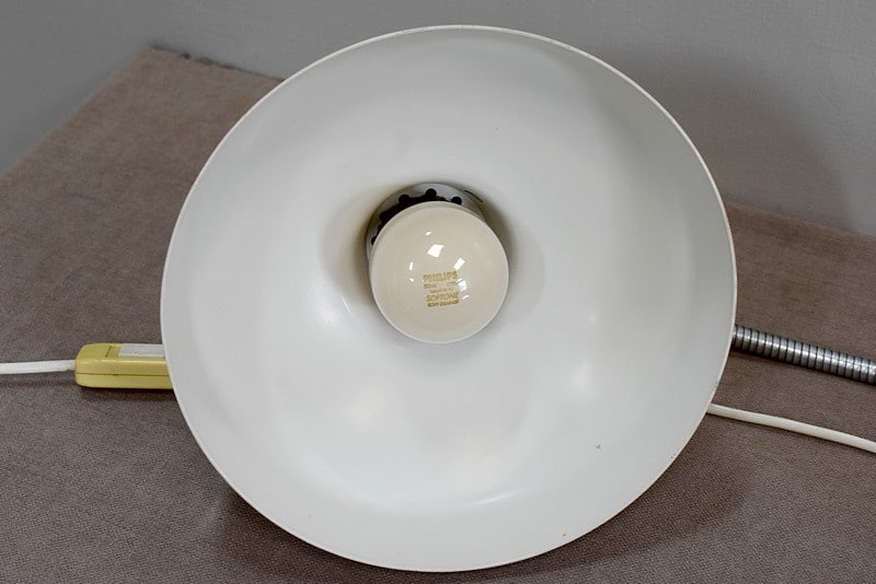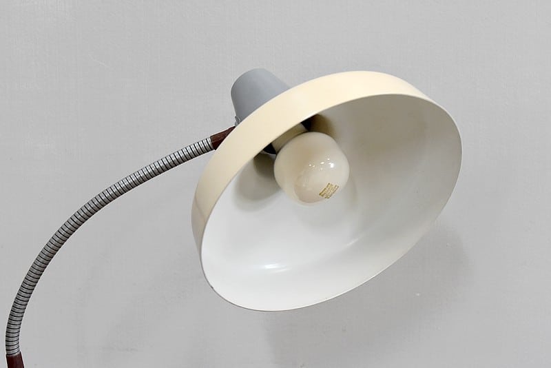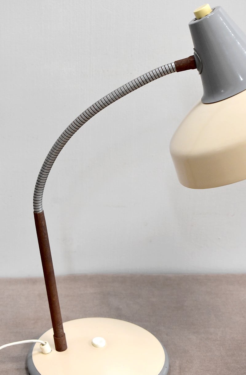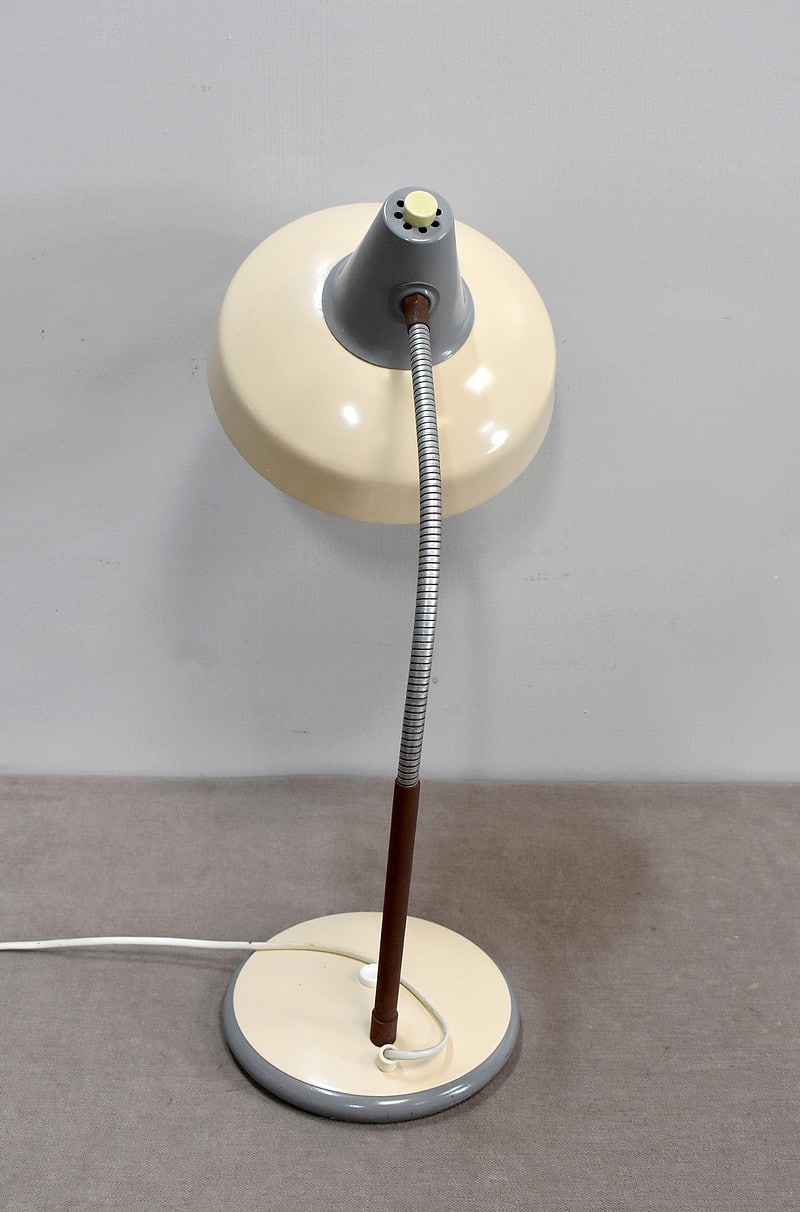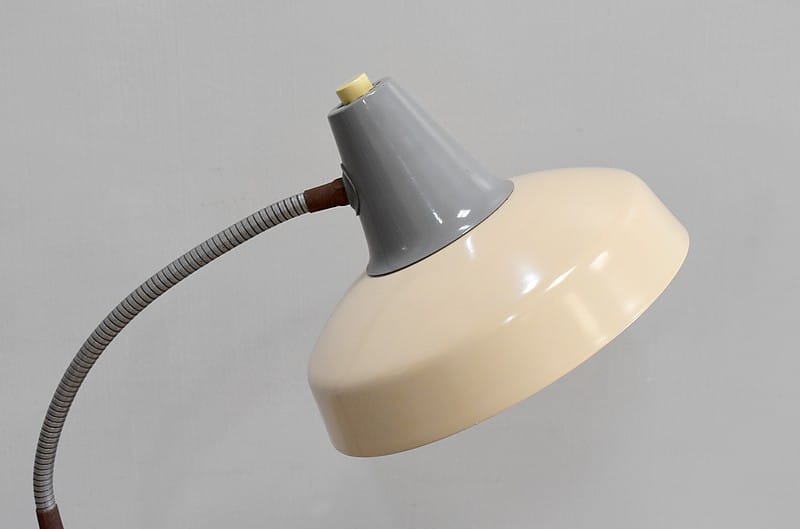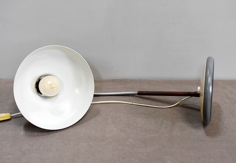 Lampe de bureau industrielle en aluminium peint électrifiée.