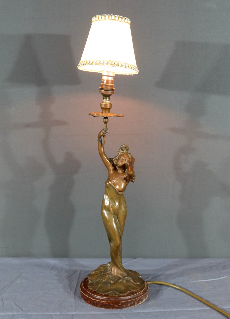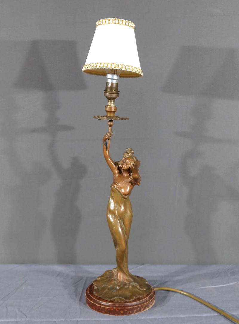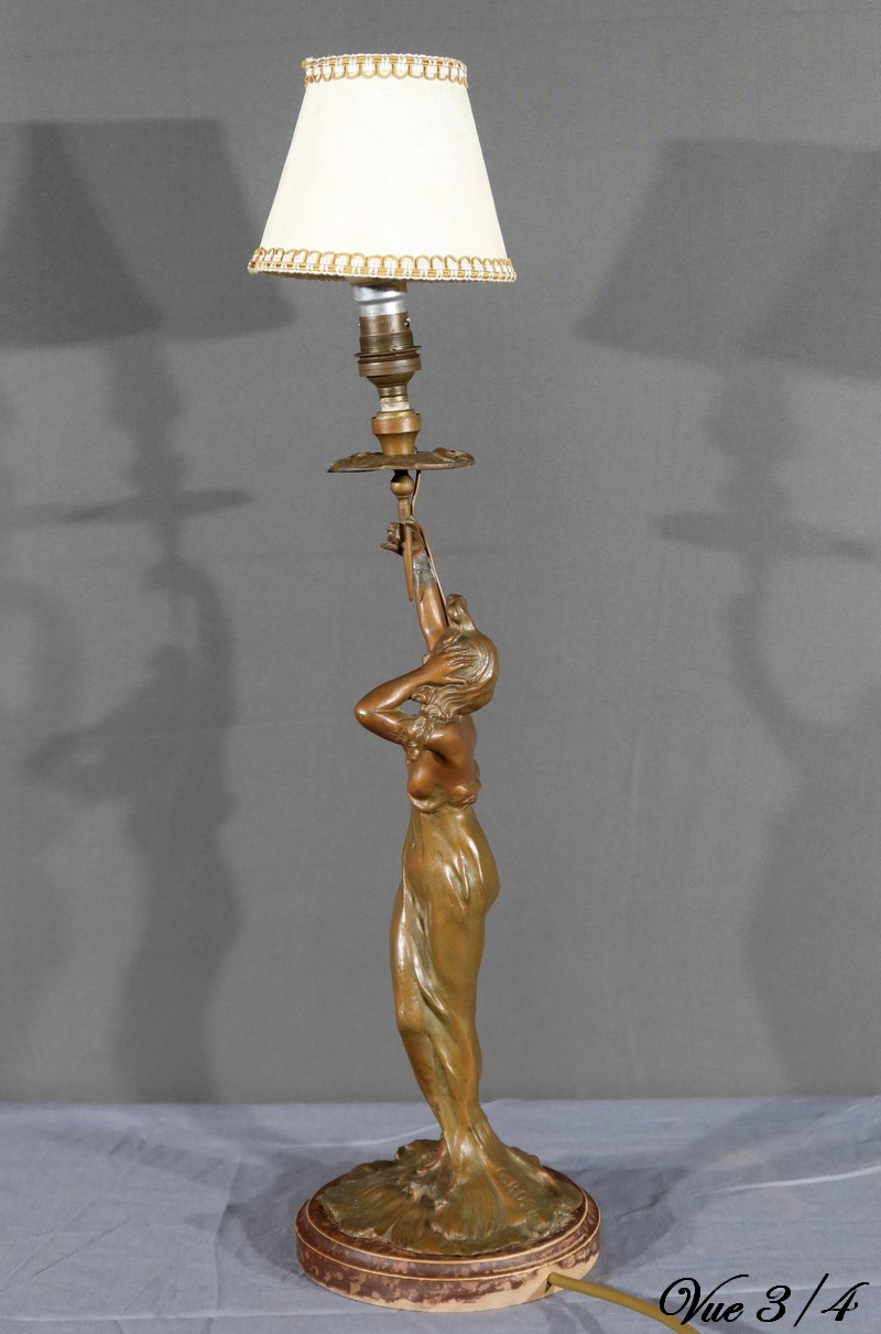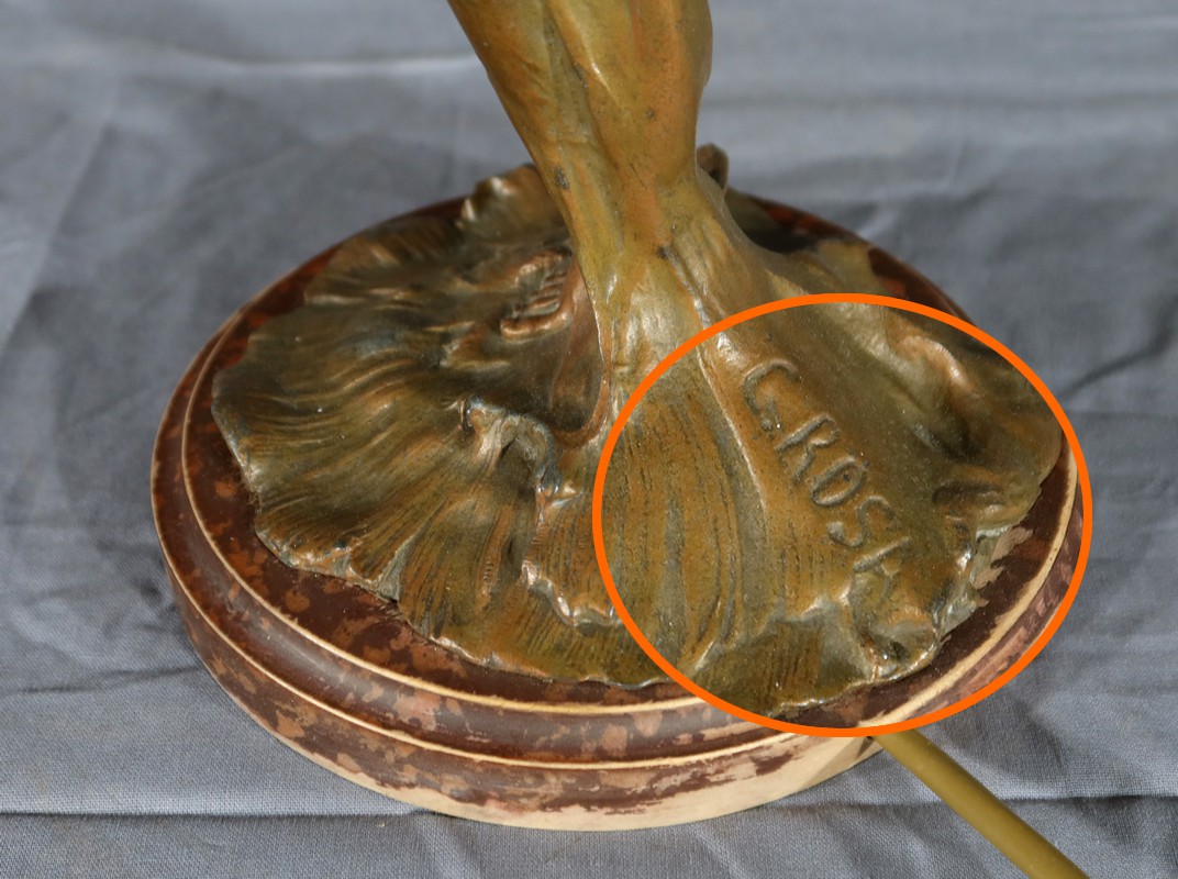 Lampe en Régule, style Art Nouveau, signée C. Rosa – Milieu XXe