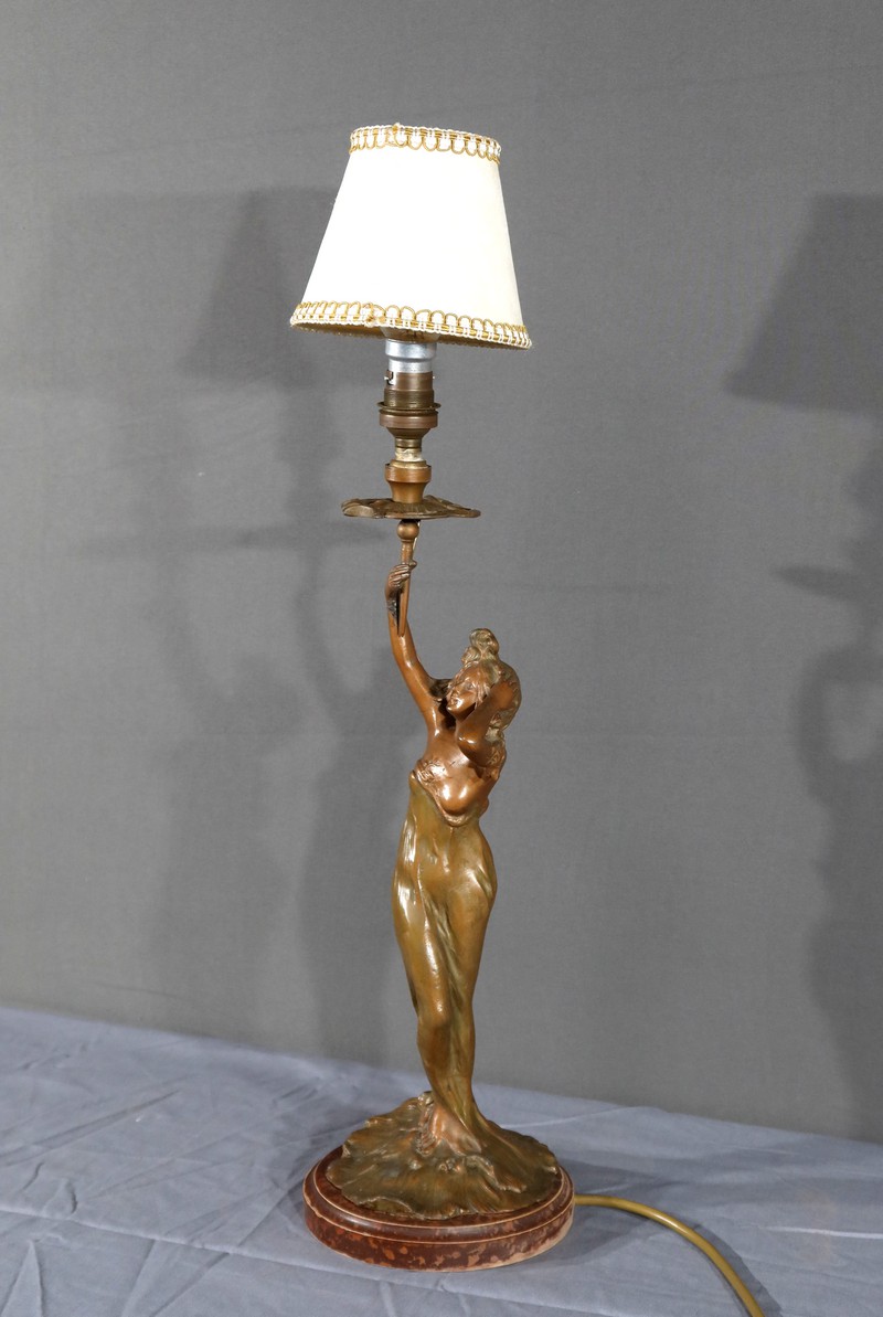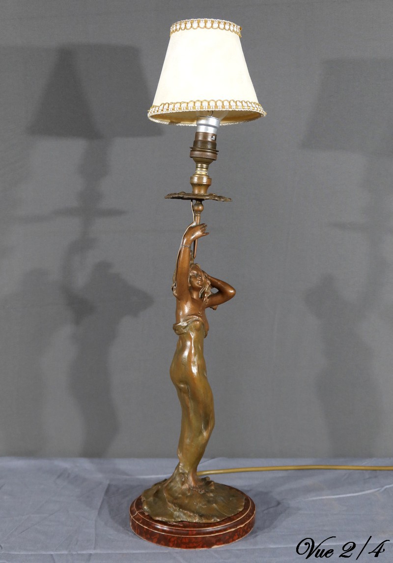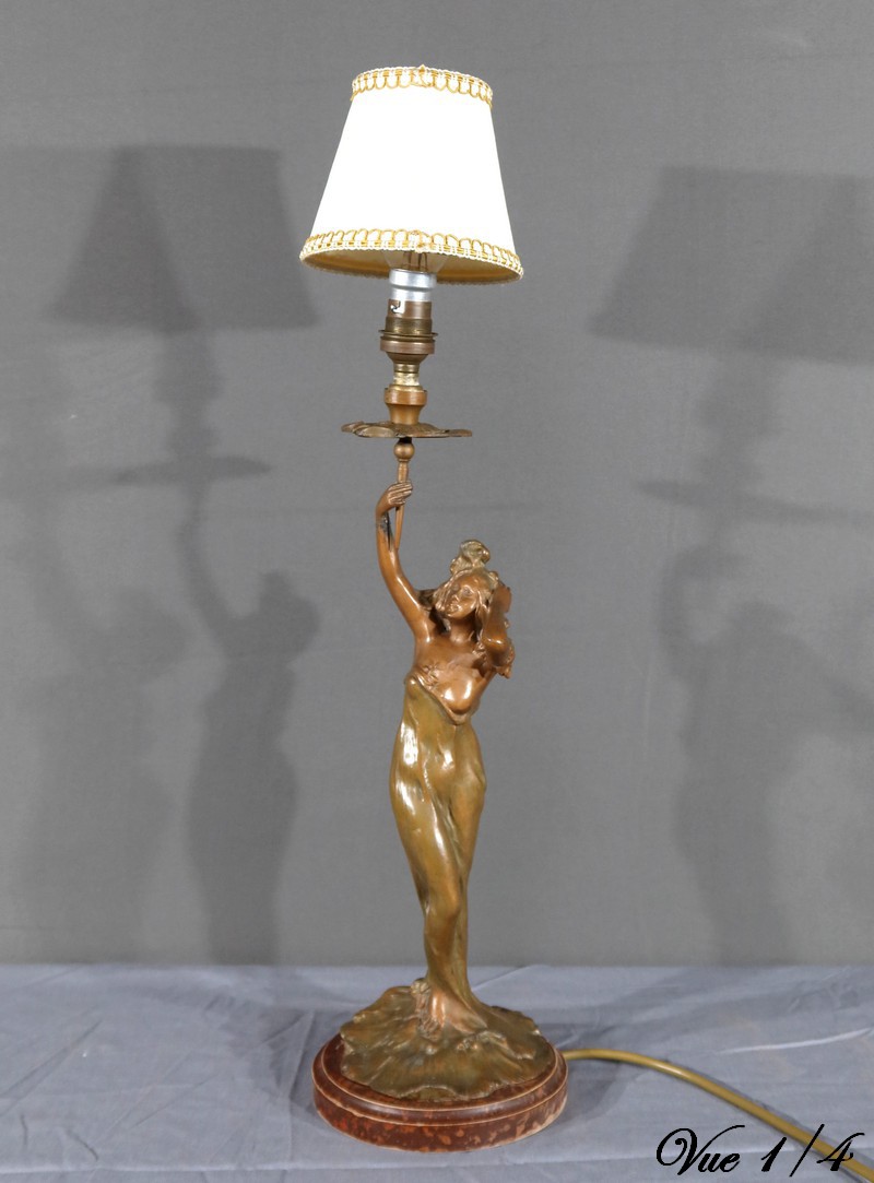 Lampe en Régule, style Art Nouveau, signée C. Rosa – Milieu XXe