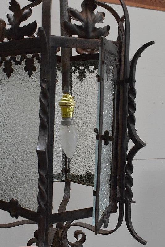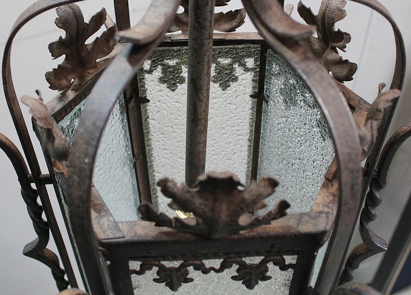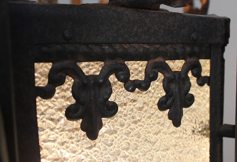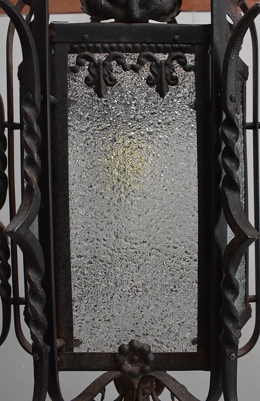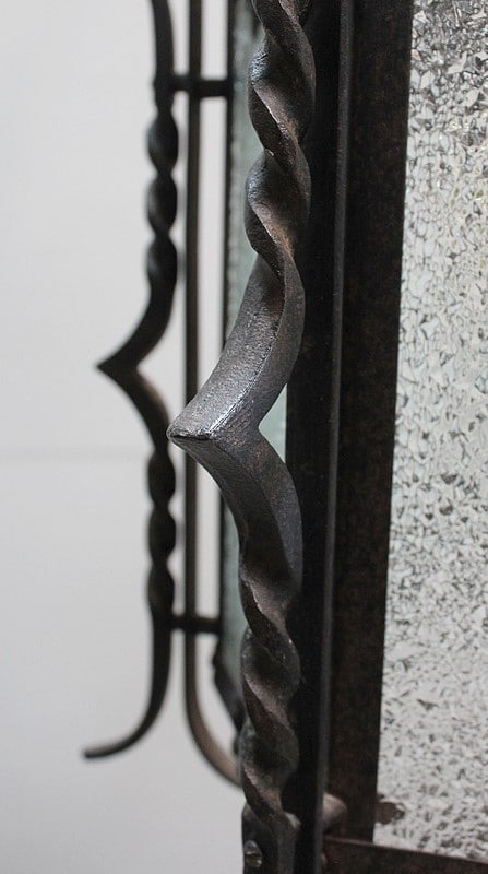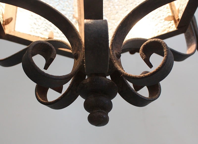 Chaque angle de cette Lanterne est agrémenté d’un barreau en Fer torsadé, disposé à la verticale.