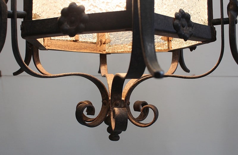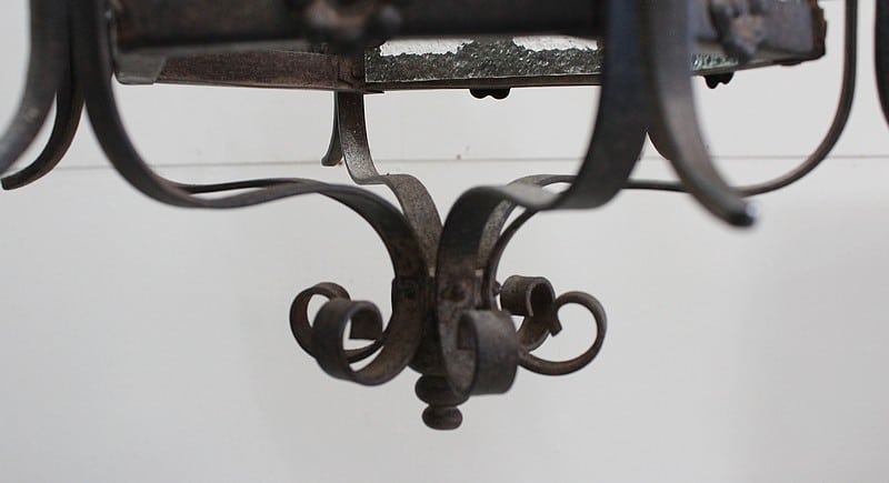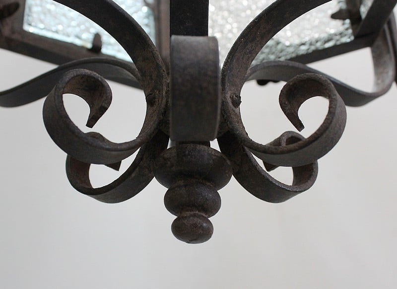 En haut comme en bas, la structure de cette Lanterne se prolonge, avec des pièces de Fer courbées et terminées en enroulements.