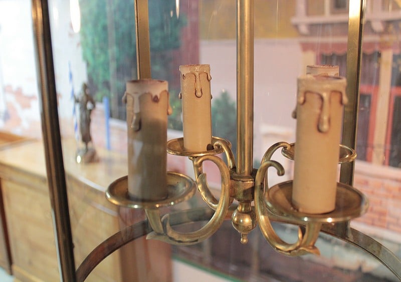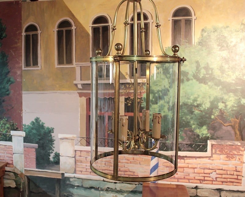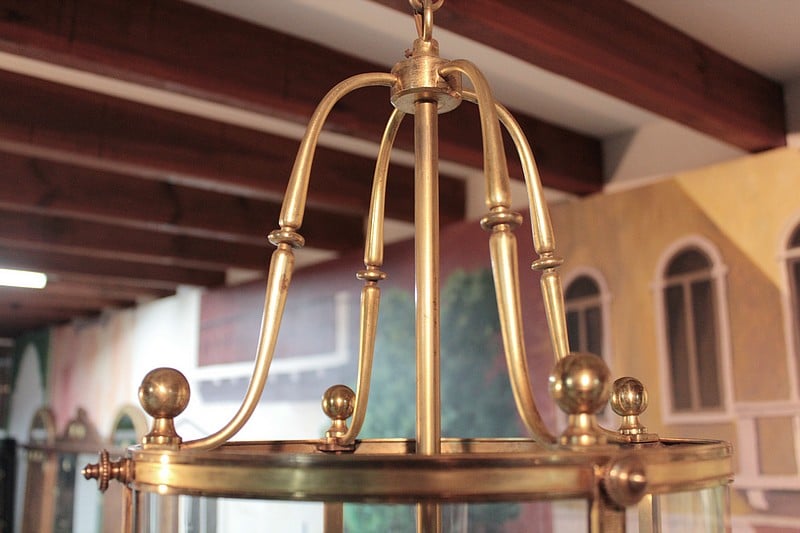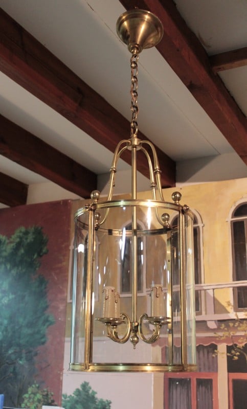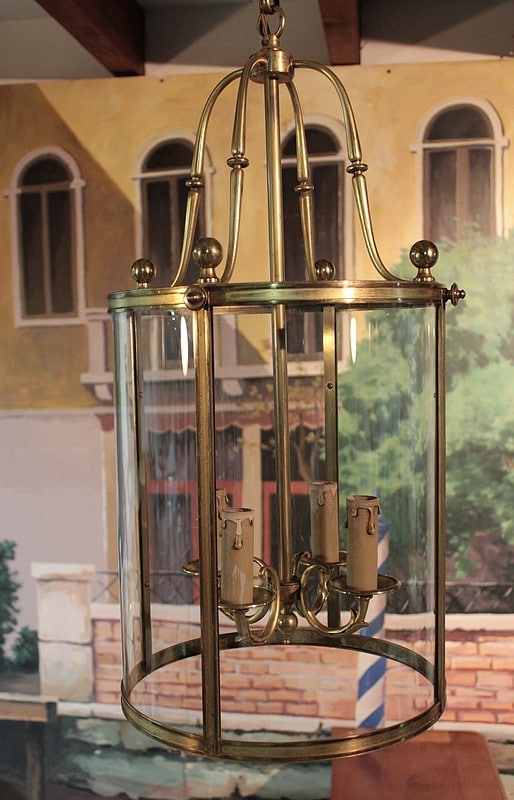 Lanterne de hall en laiton et verre éclairant par 4 bougies.