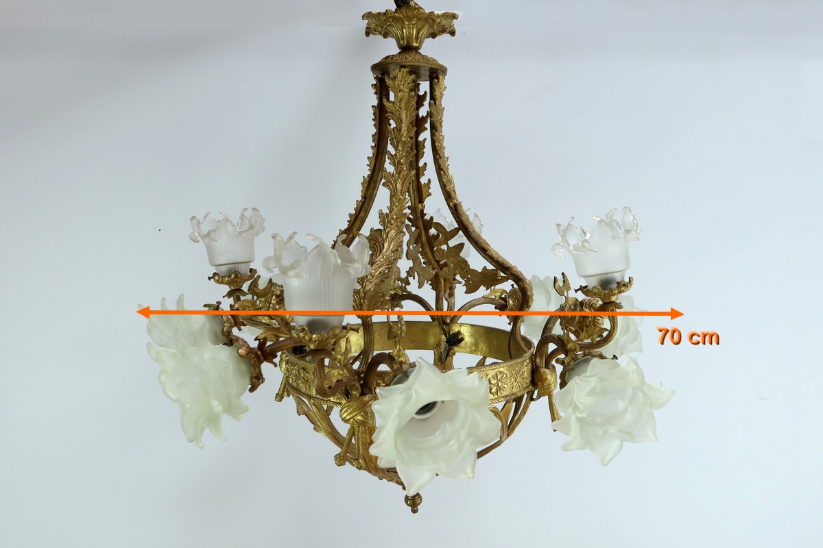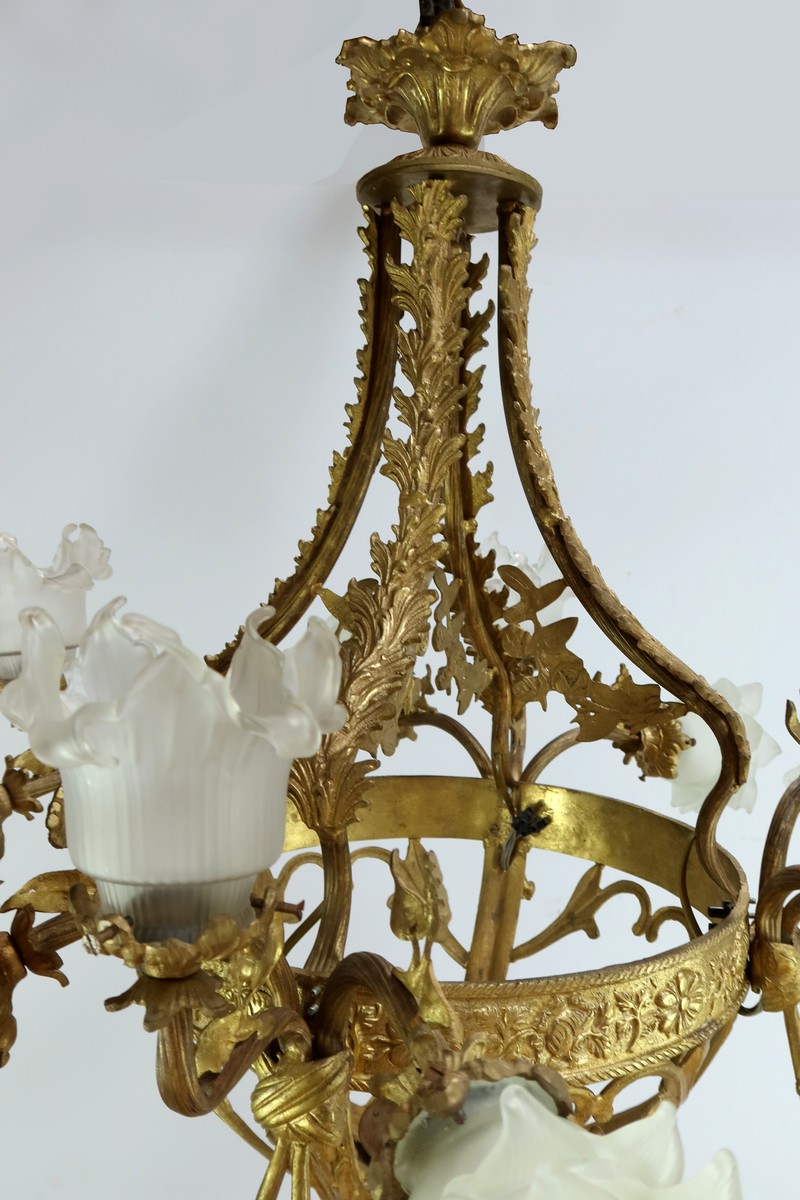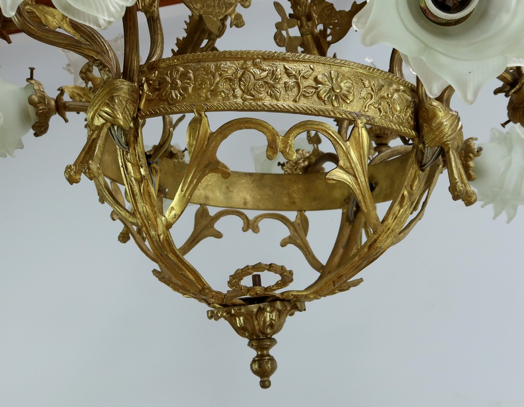 Lustre à 12 Lumières en Bronze Doré, style Napoléon III – Fin XIXe