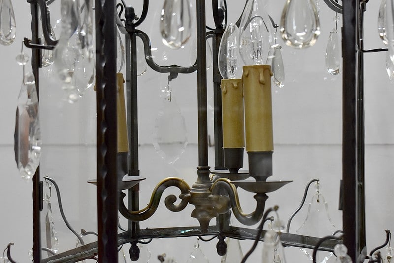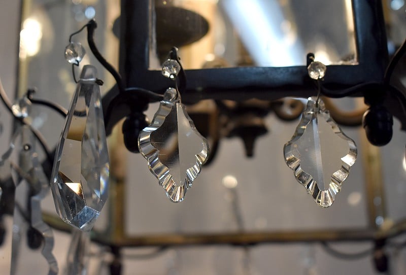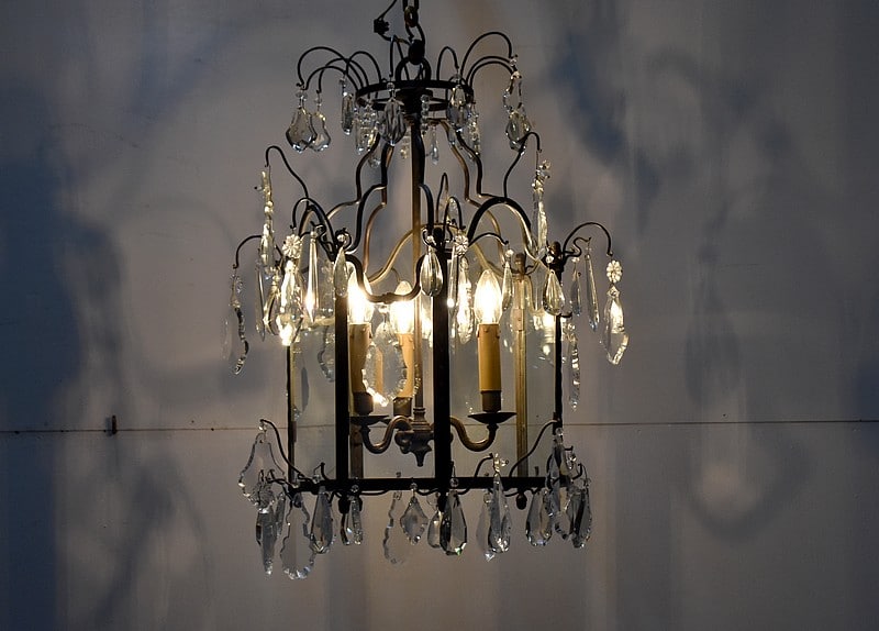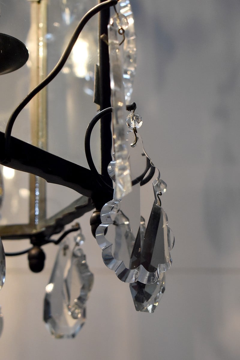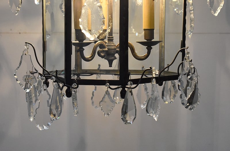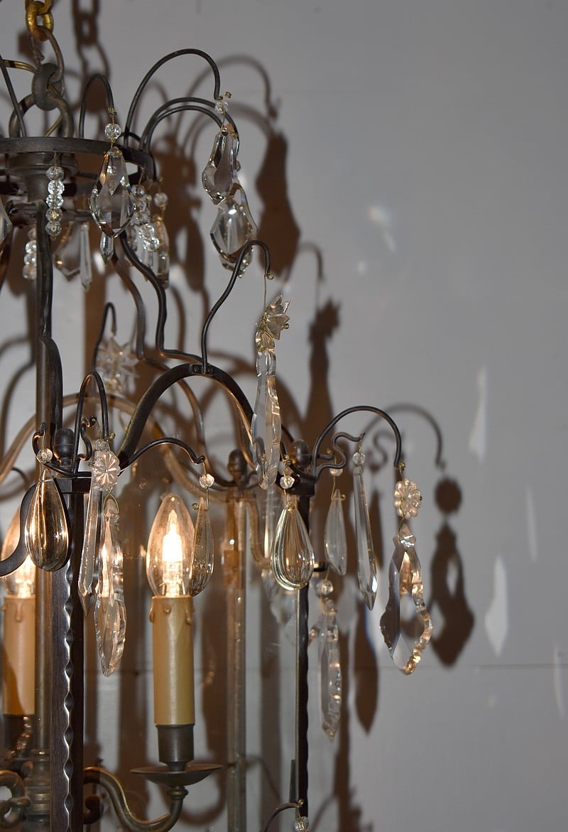 Il est composé d’une cage hexagonale en verre décorée de multiple pampilles en cristal biseautées de toutes formes.