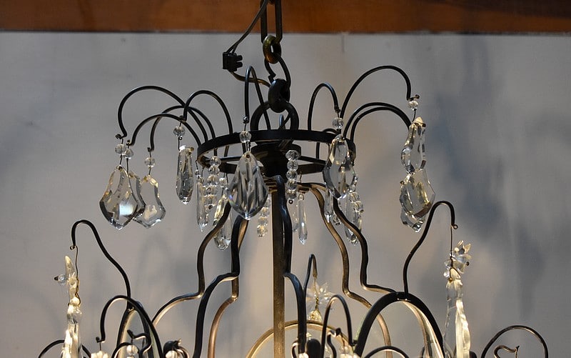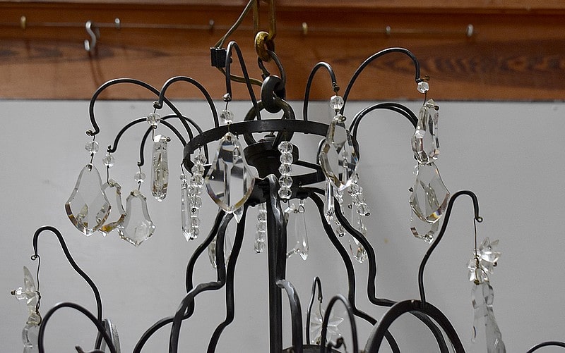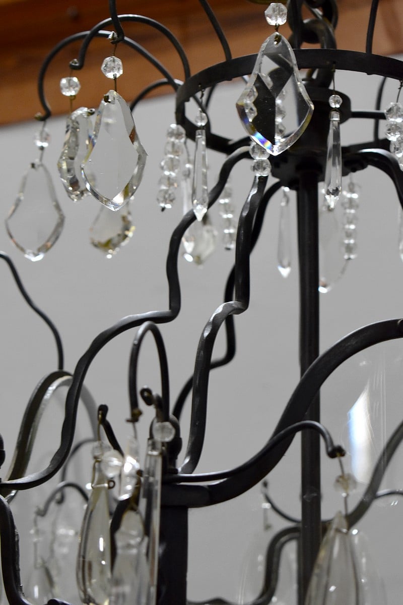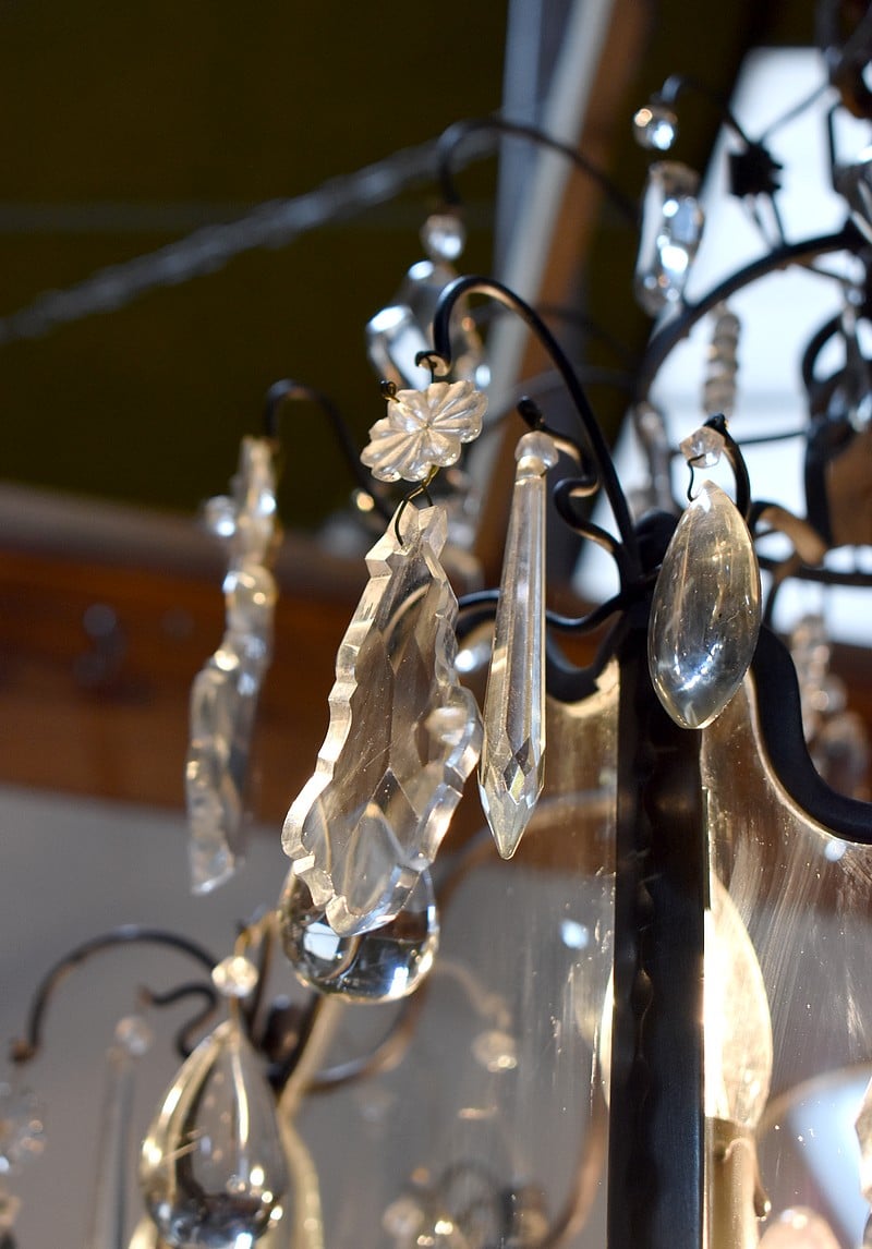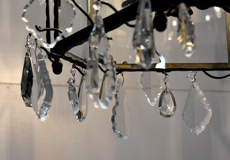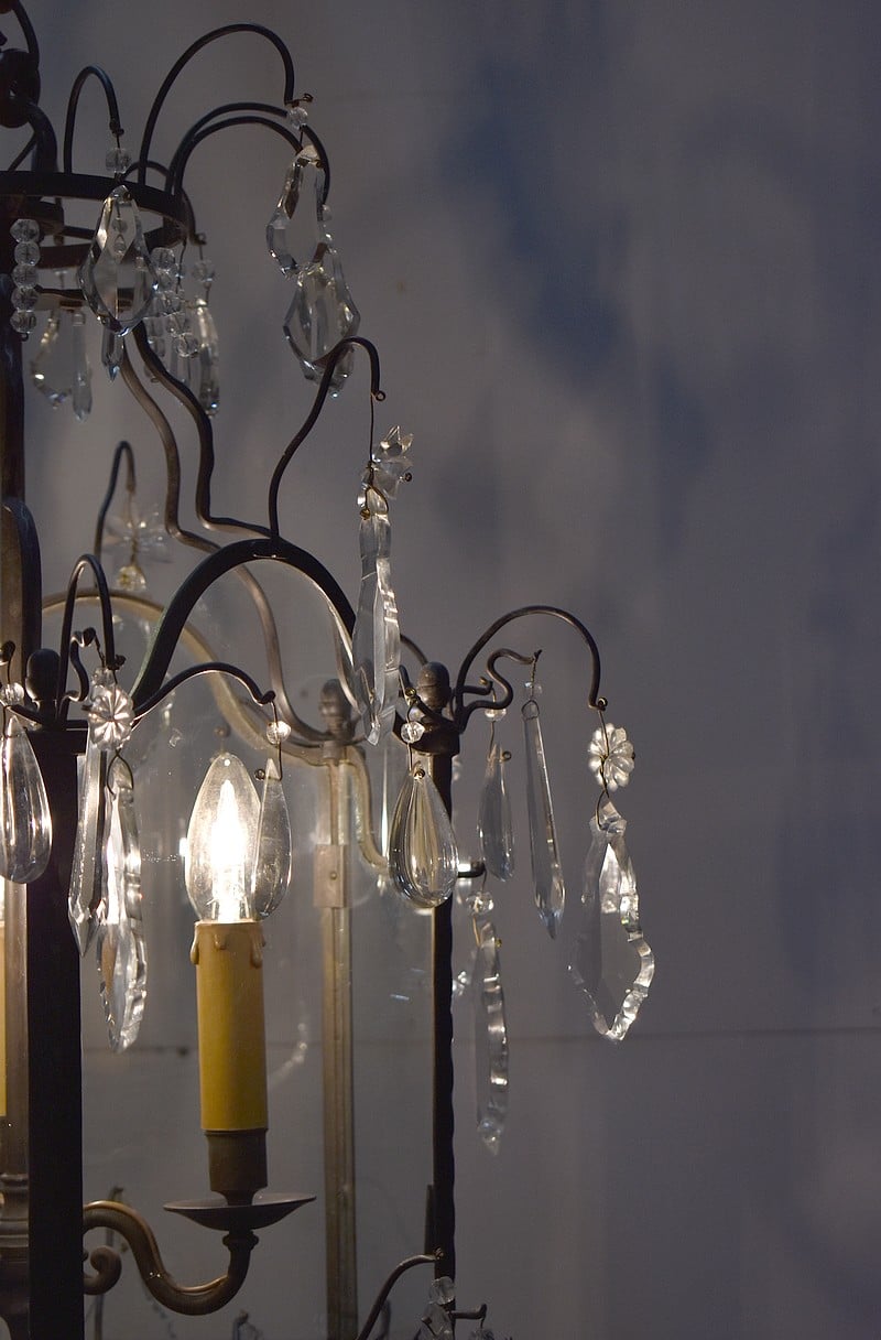 Il est composé d’une cage hexagonale en verre décorée de multiple pampilles en cristal biseautées de toutes formes.