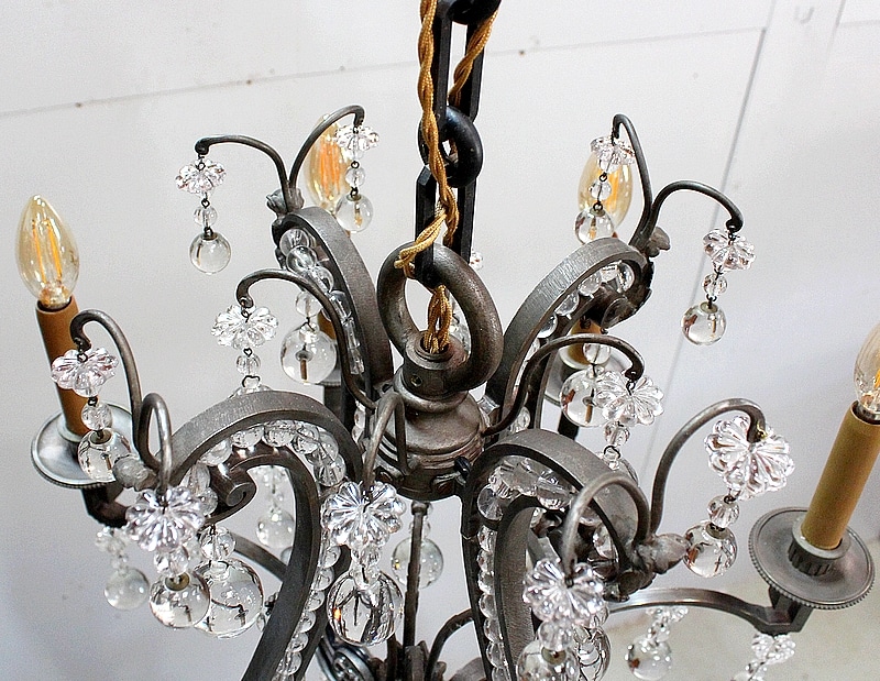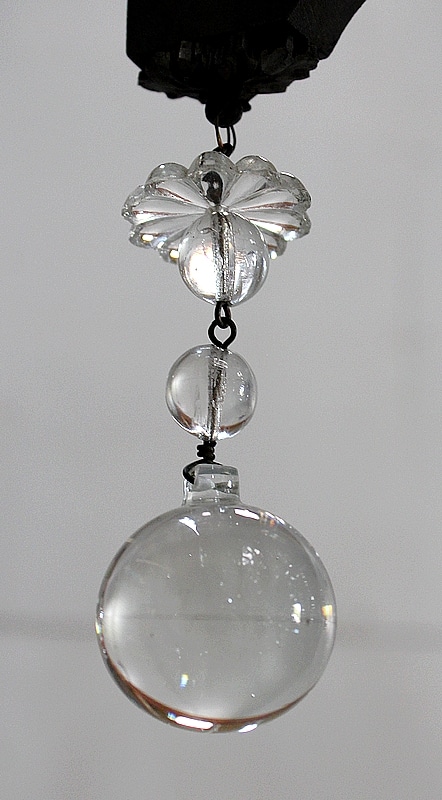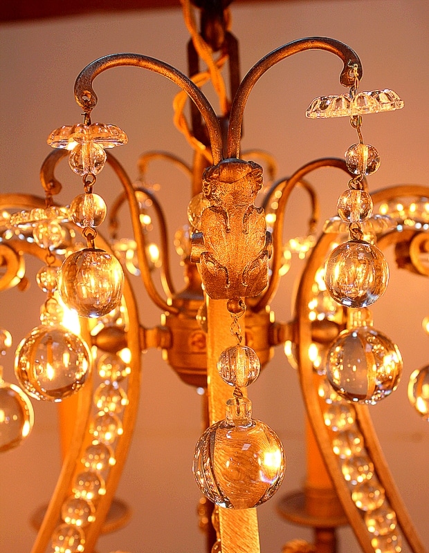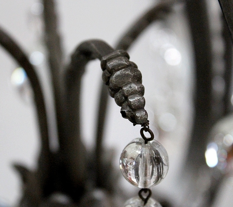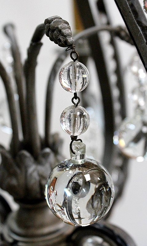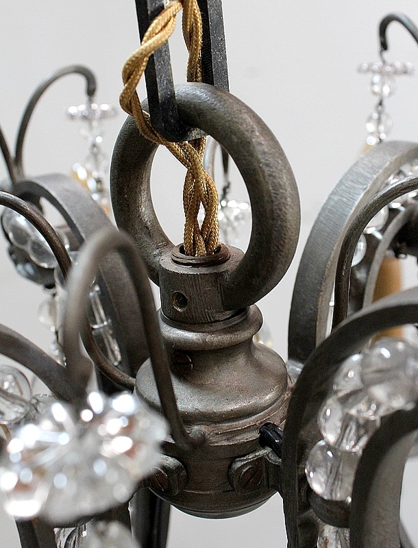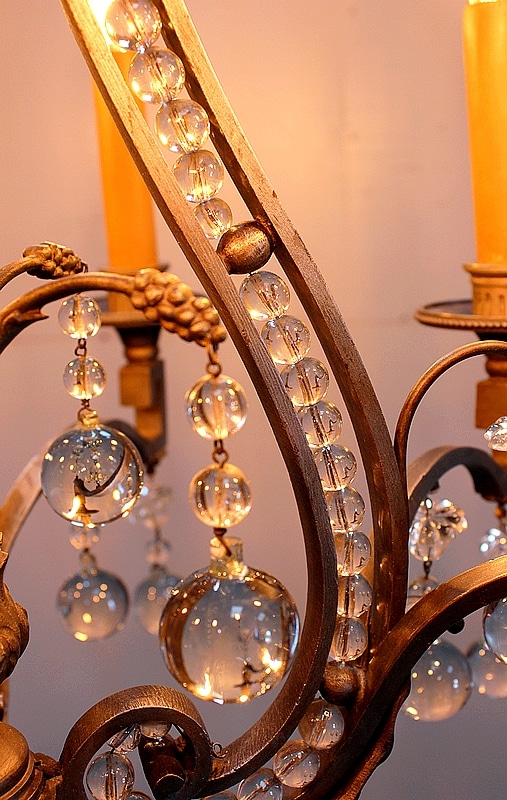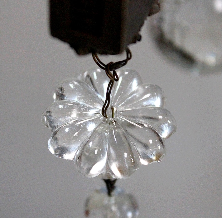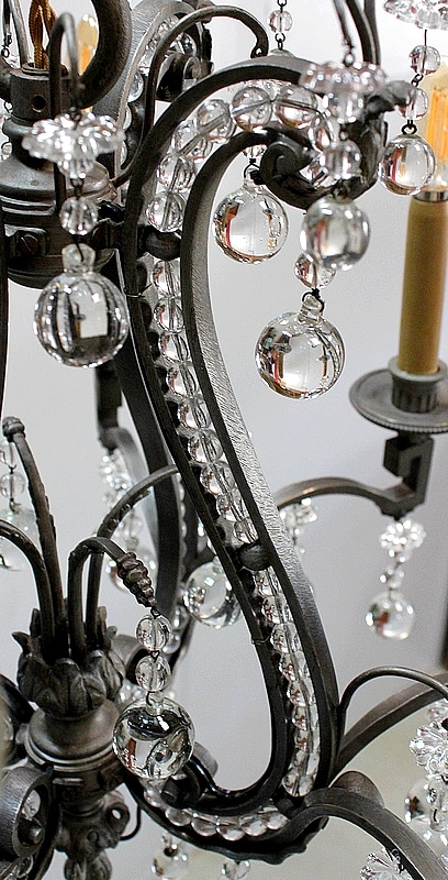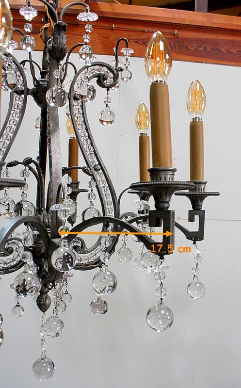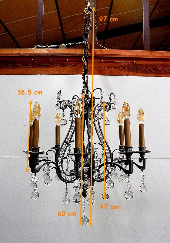 Ce Luminaire est enjolivé de nombreuses Pampilles de Cristal, taillées en Pommes et Boules.