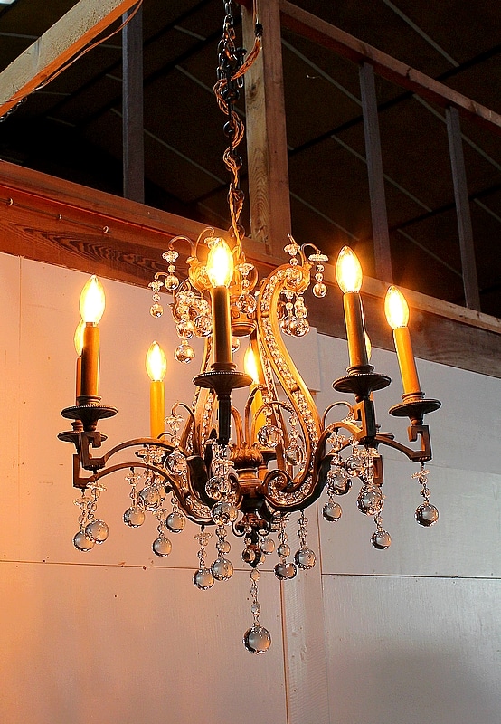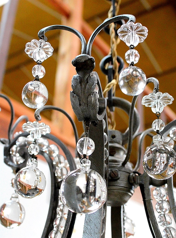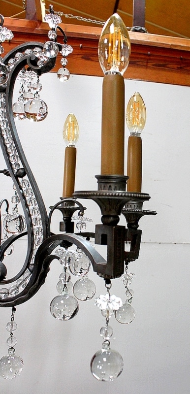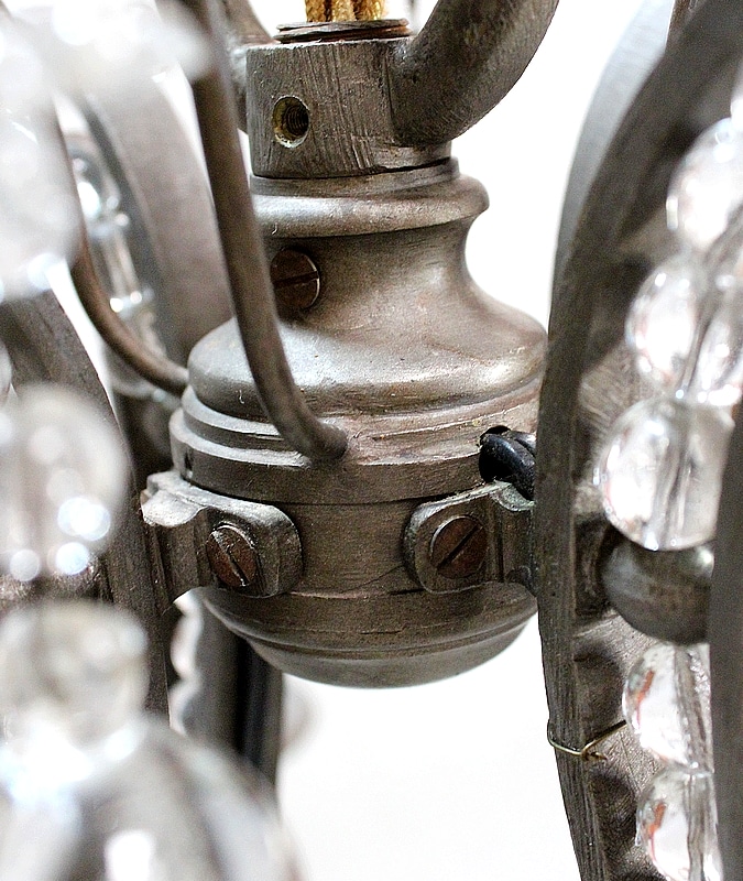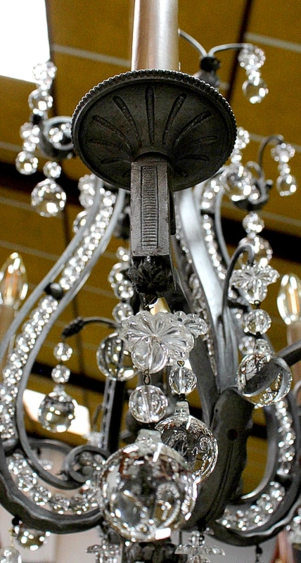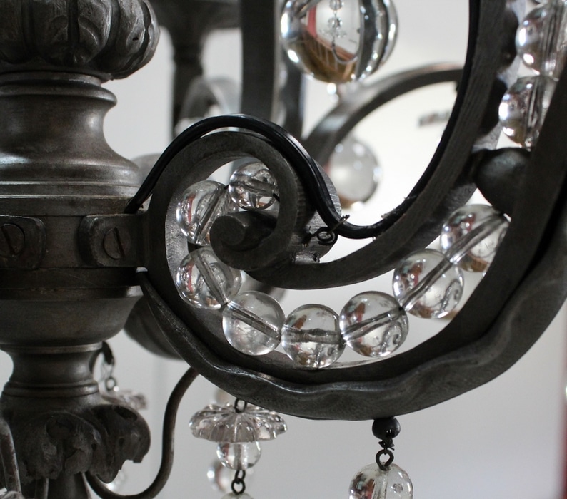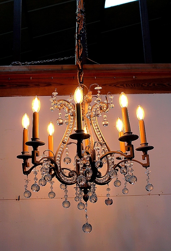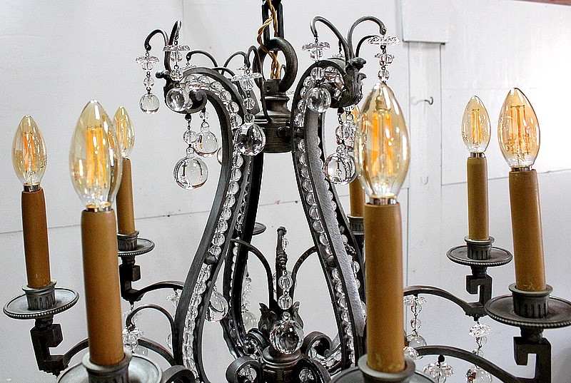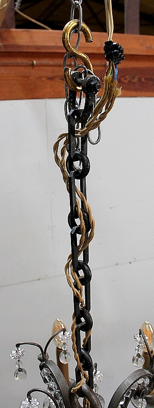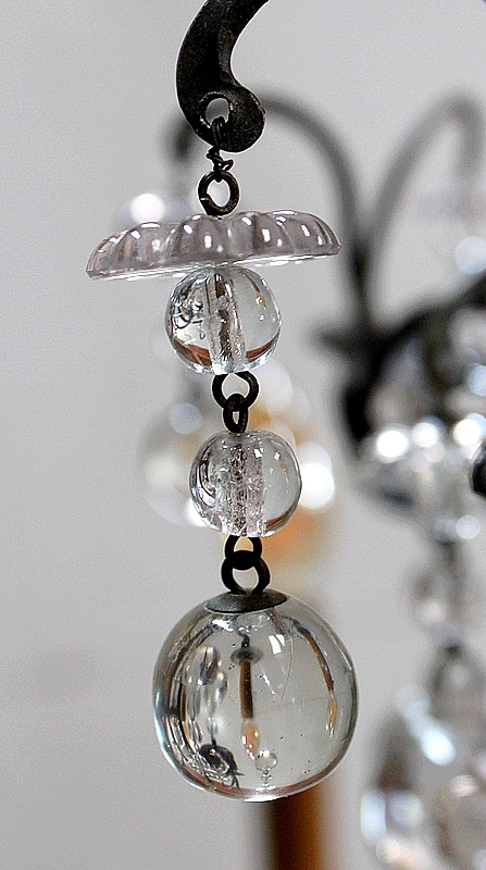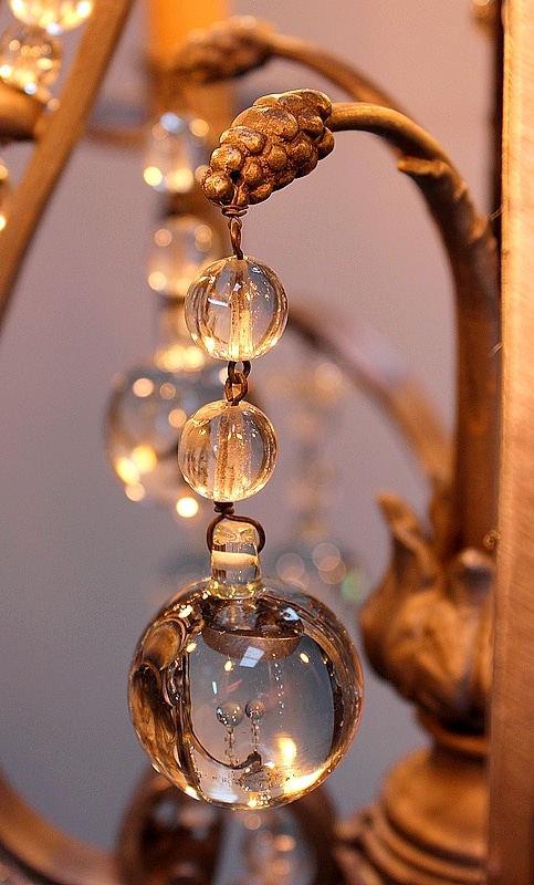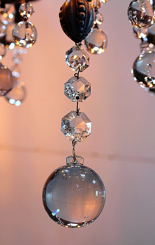 Ce Luminaire est enjolivé de nombreuses Pampilles de Cristal, taillées en Pommes et Boules.