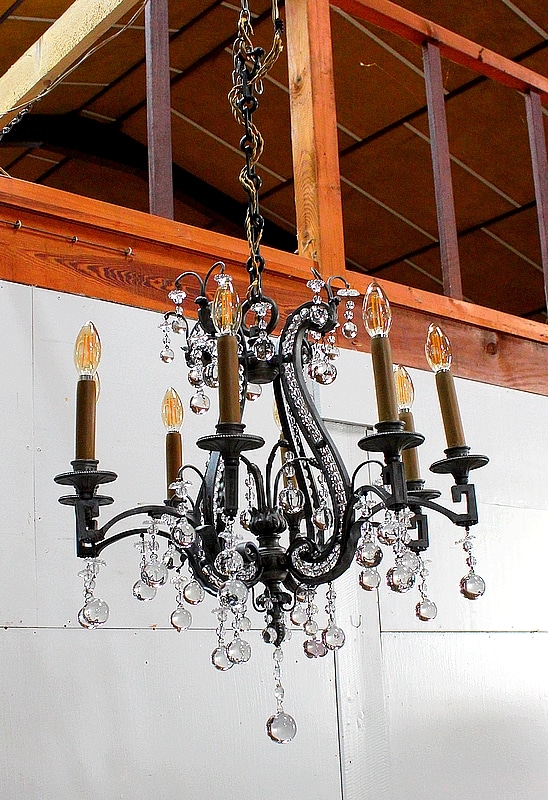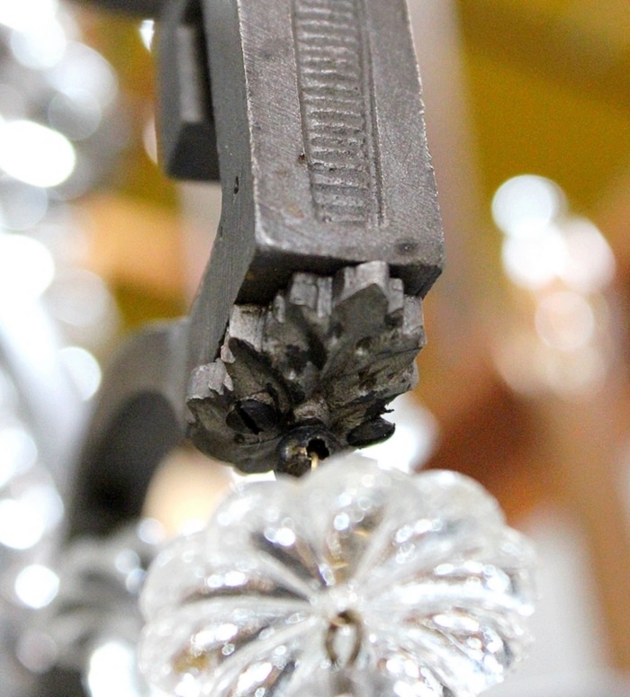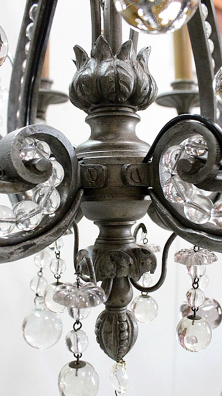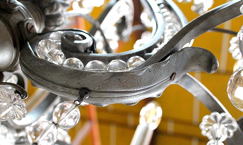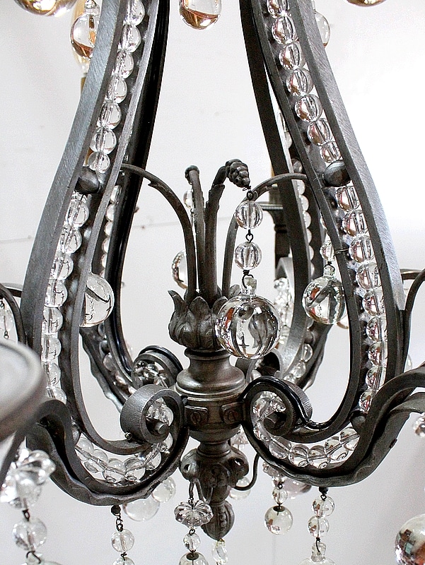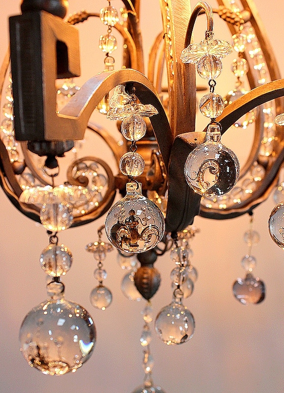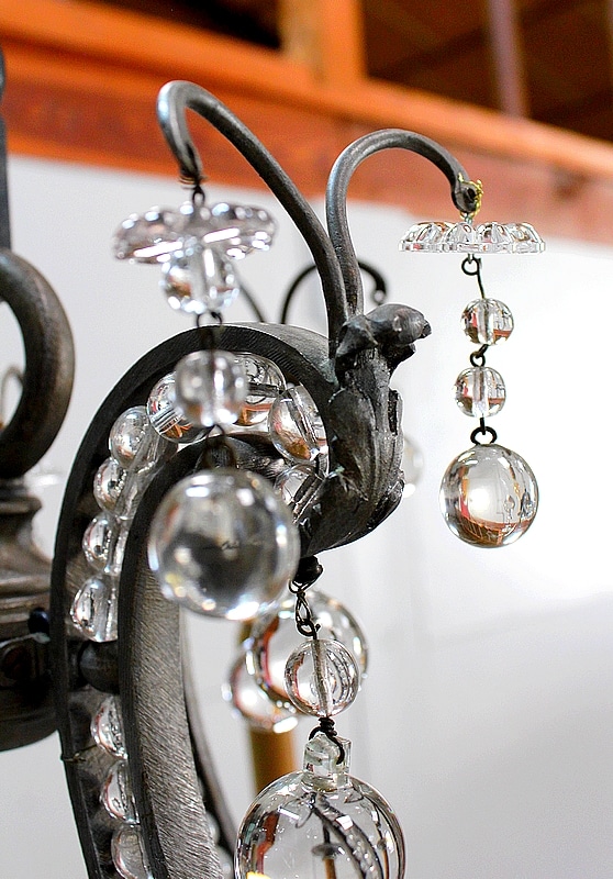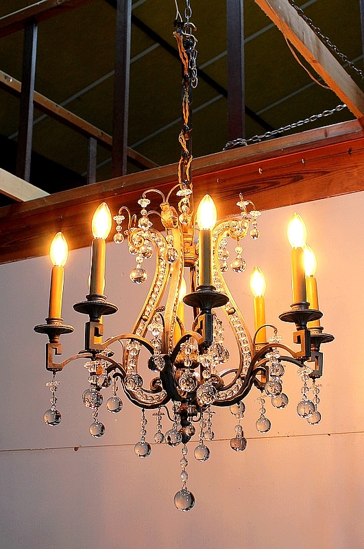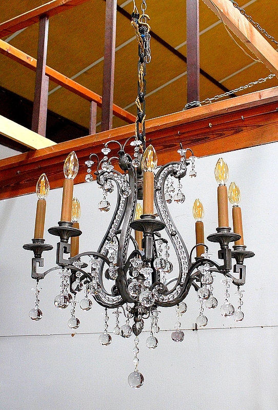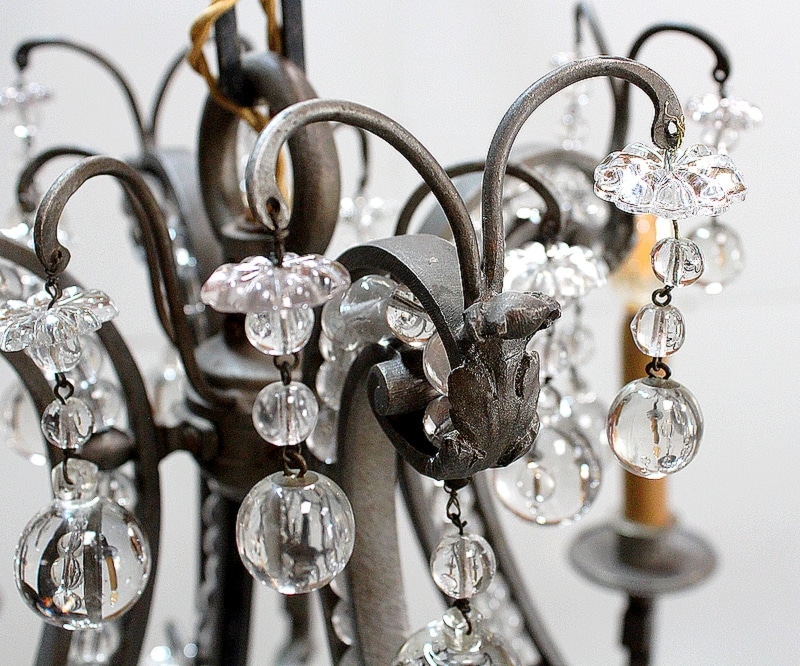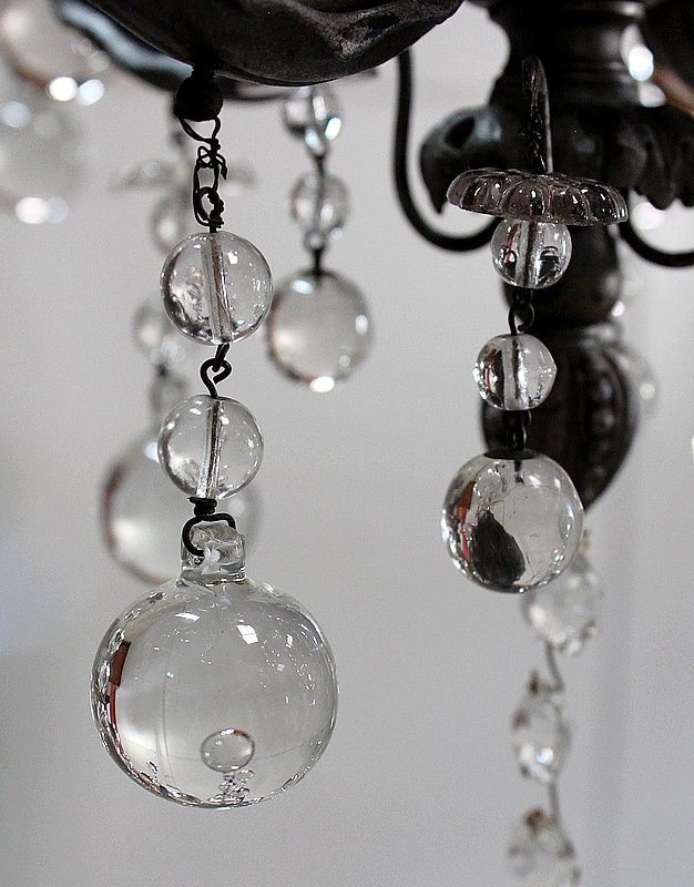 Ce Luminaire est enjolivé de nombreuses Pampilles de Cristal, taillées en Pommes et Boules.