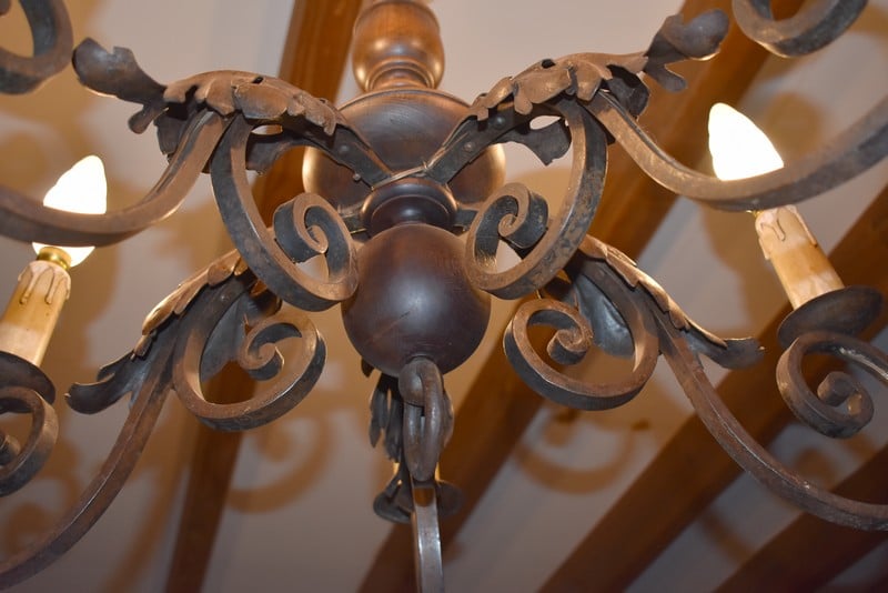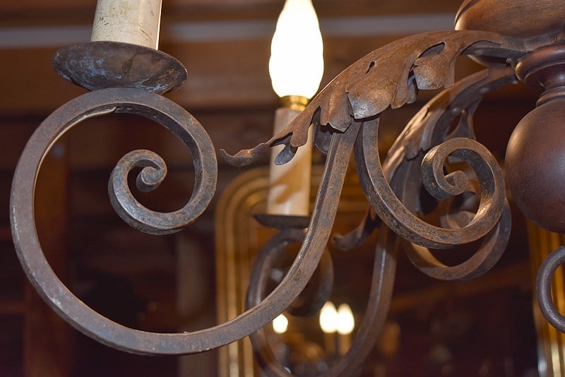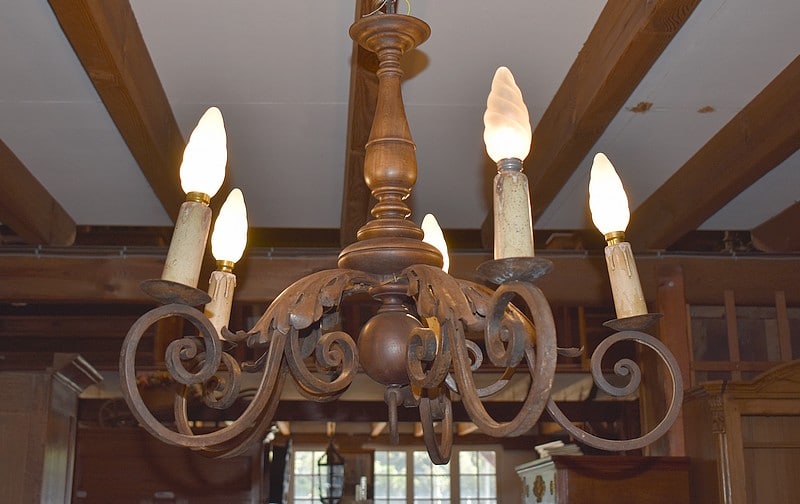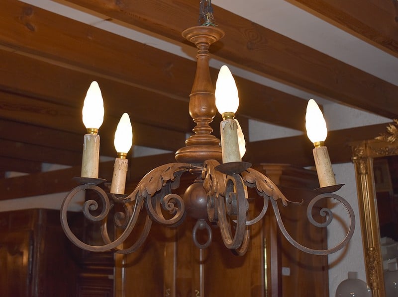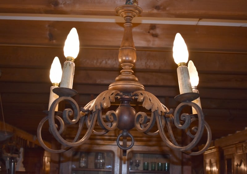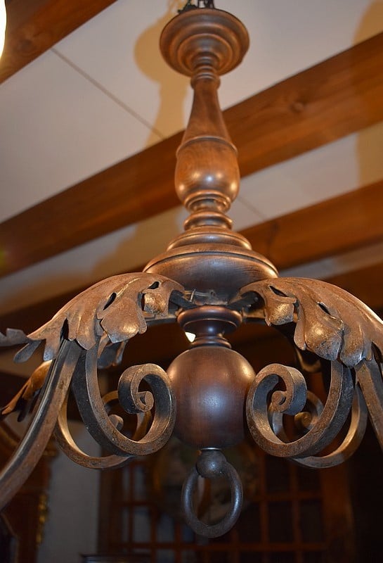 Lustre en Bois et Fer forgé XXe