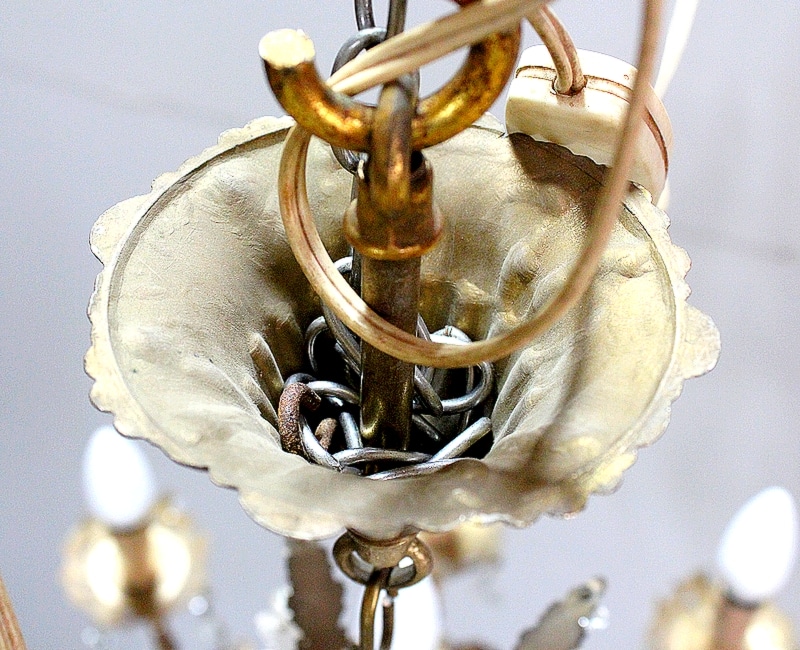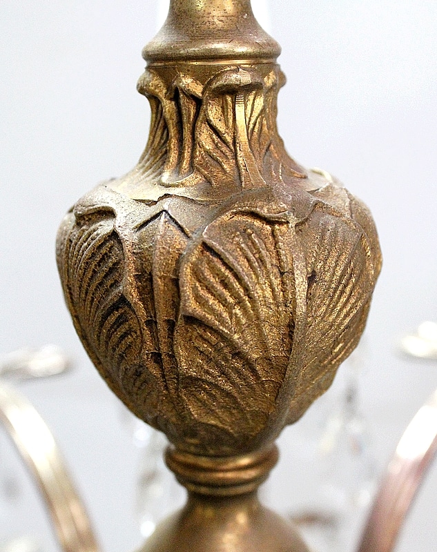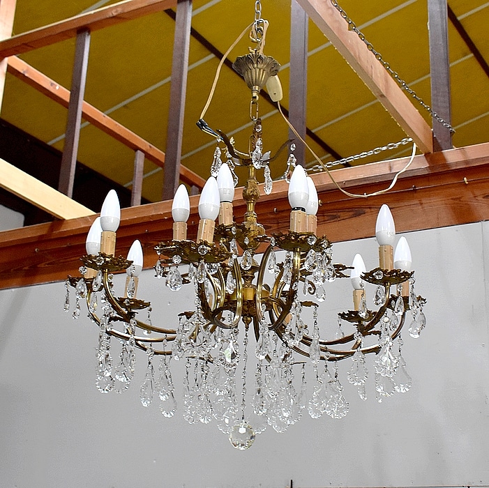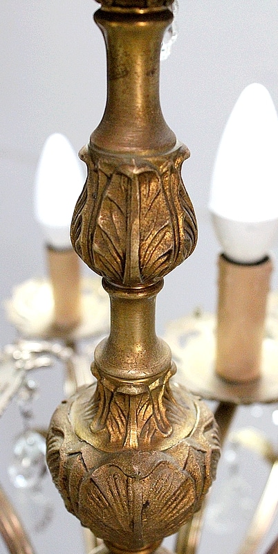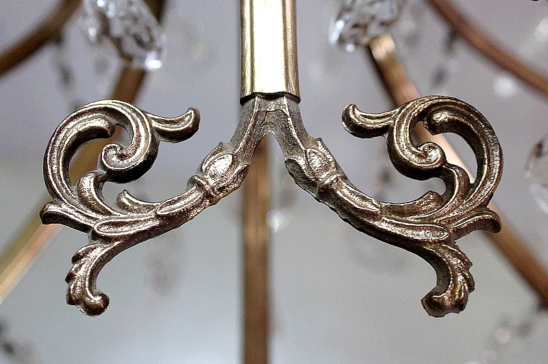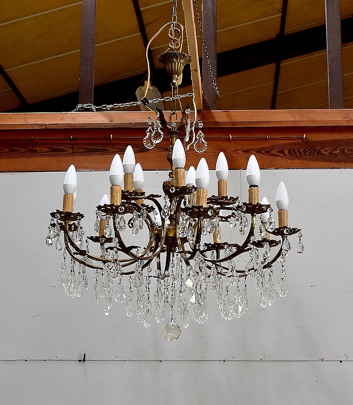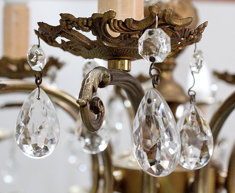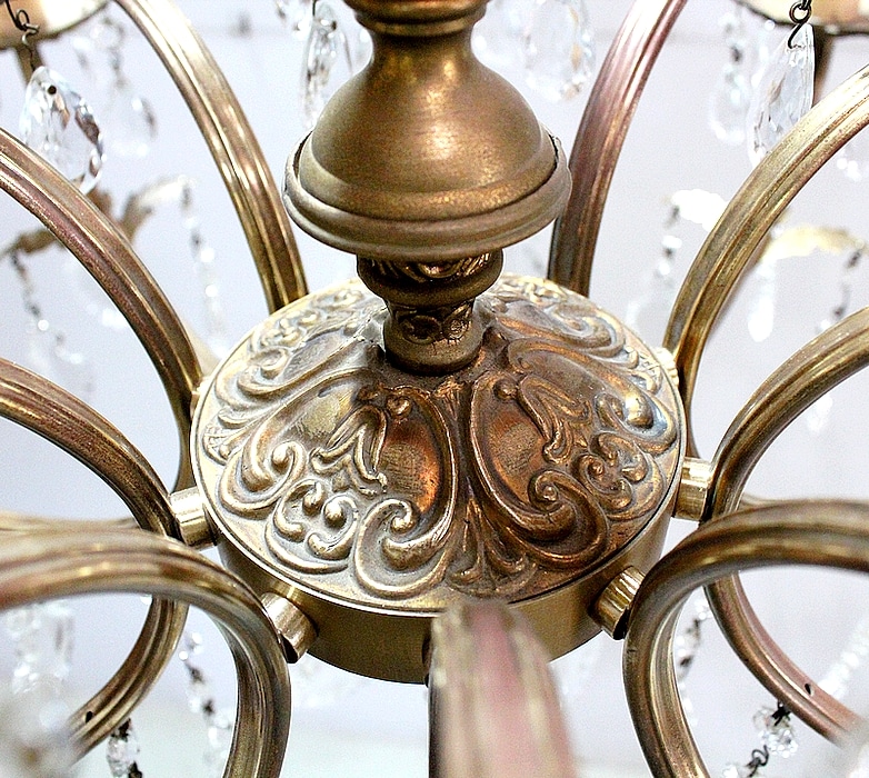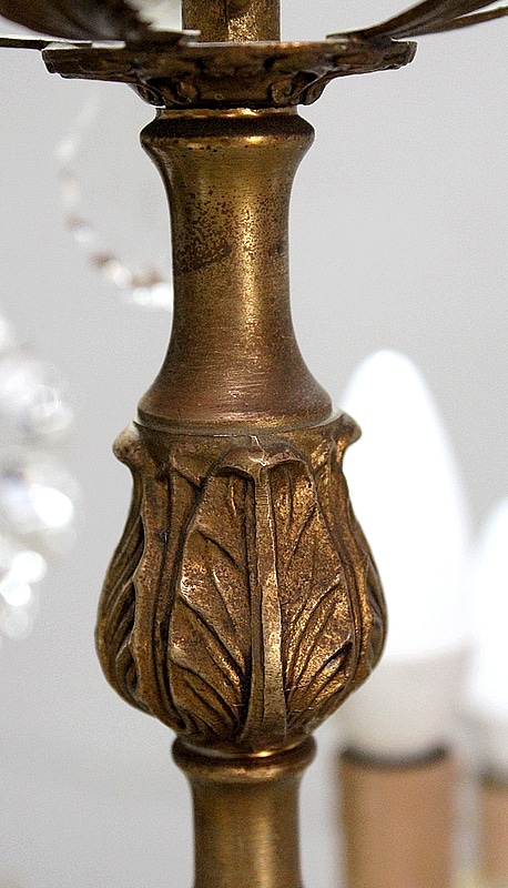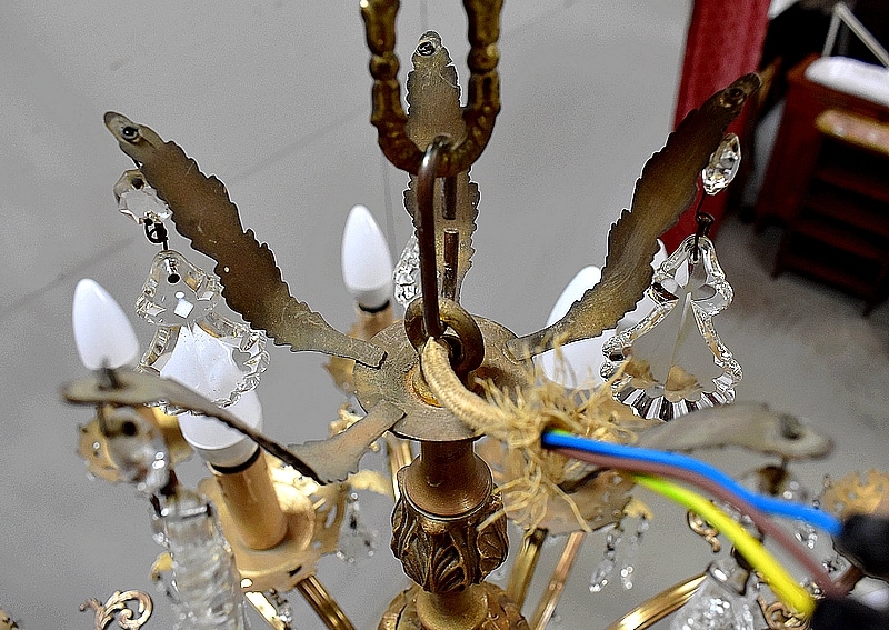 Élégant Lustre avec structure en Bronze et Laiton, terminée par des Cristaux de Bohème.
