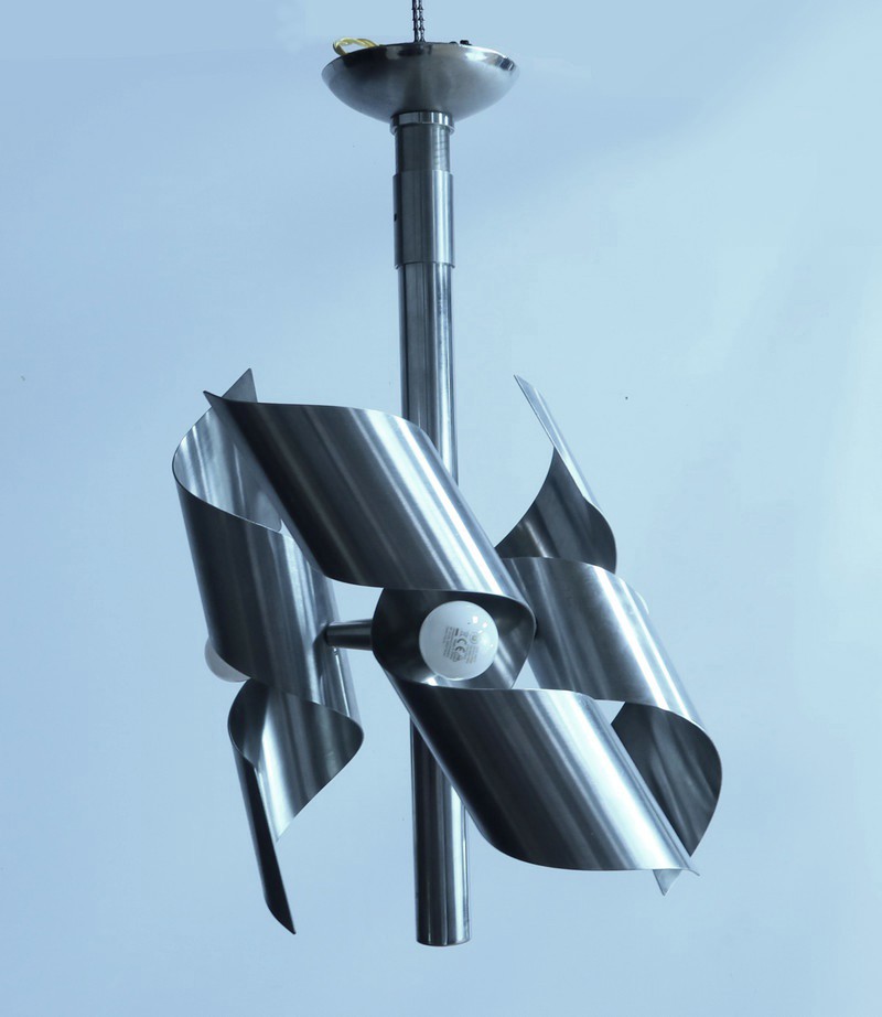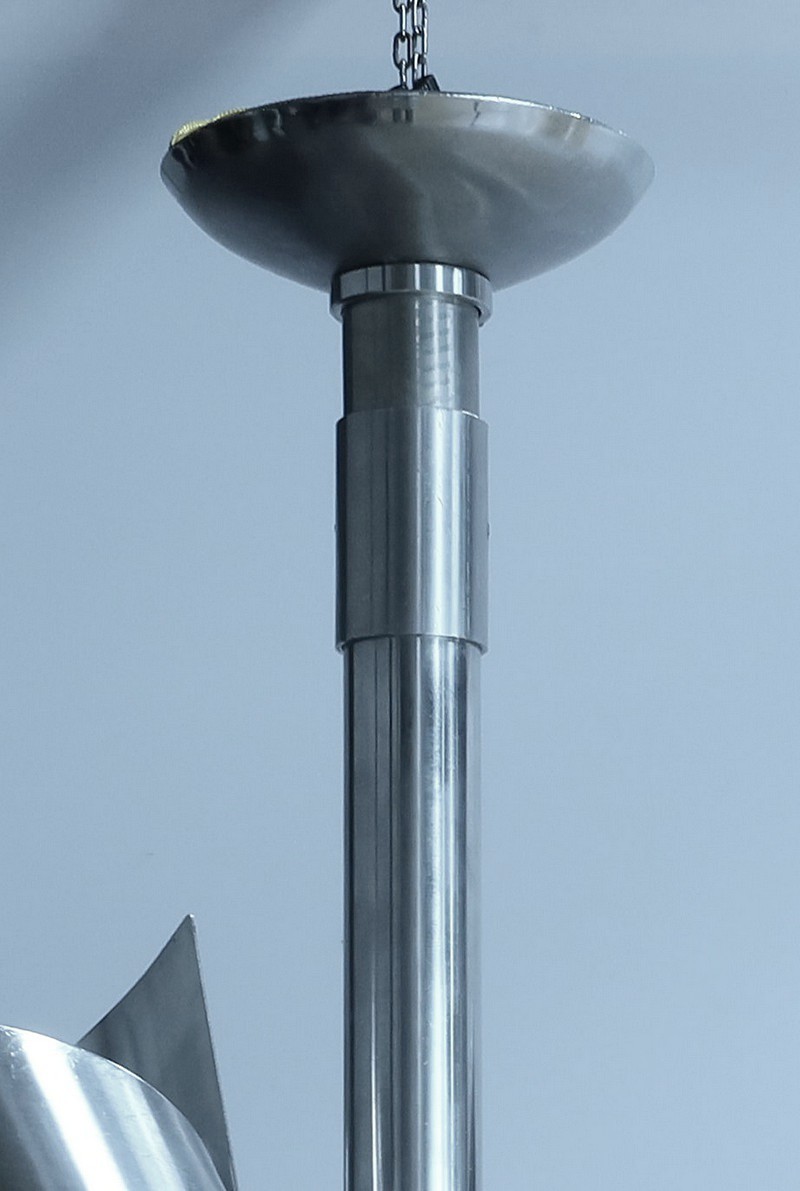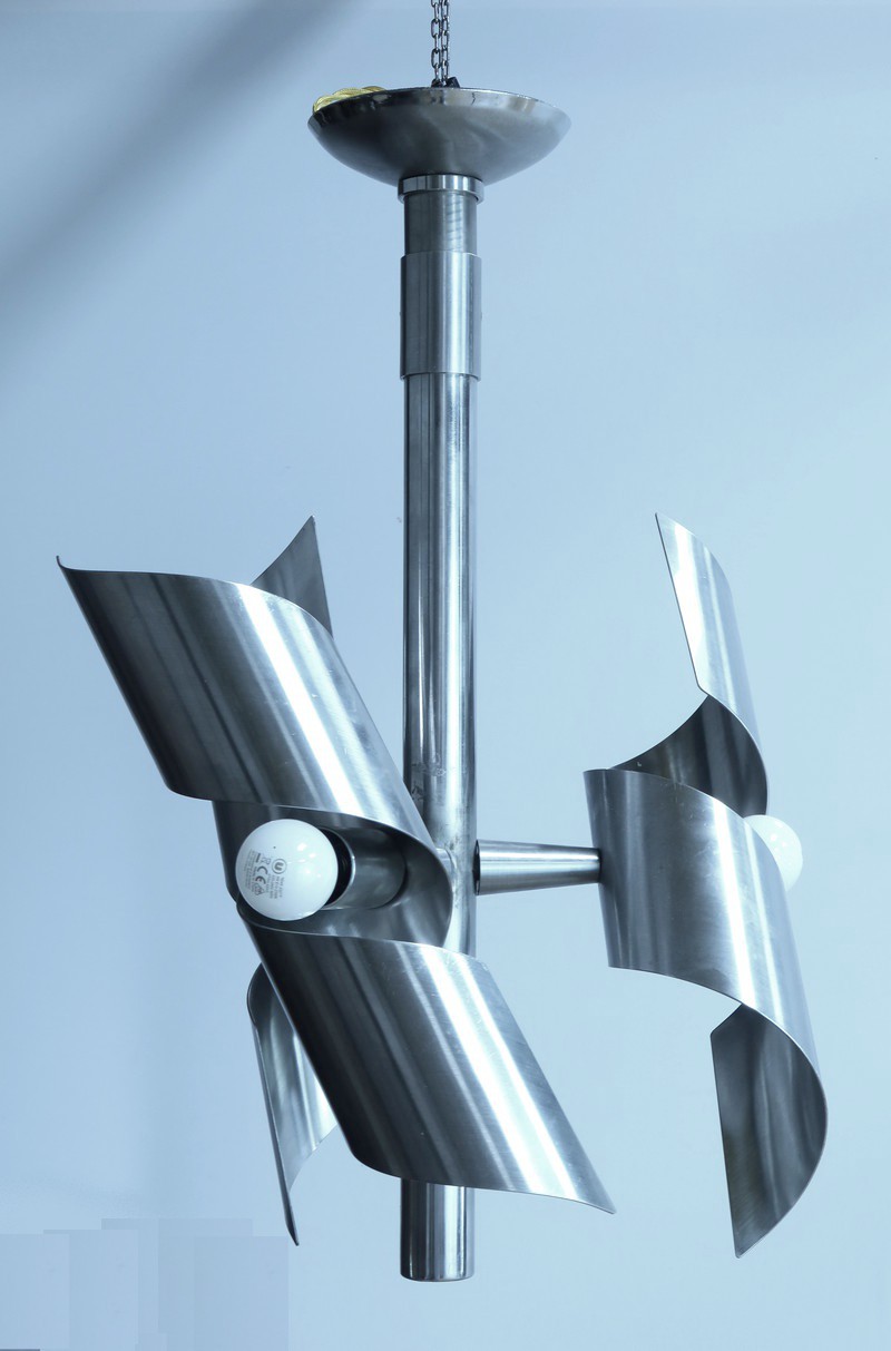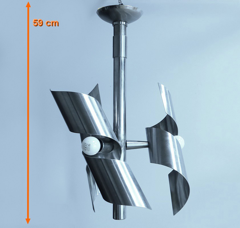 Ce magnifique lustre en inox, typique du style Space Age des années 60, est une véritable œuvre visionnaire.
