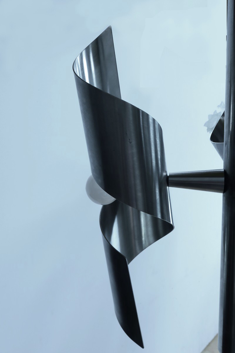 Il se distingue par ses trois bras de lumière en tourbillon, qui pivotent pour permettre de jouer avec la luminosité et créer des ambiances variées.