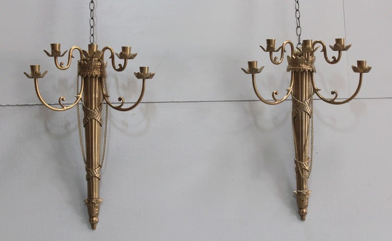 Paire d’appliques en bronze style Louis XVI en forme d’asperge ornées sur la partie principale de rubans croisés et ciselés sur la partie basse.