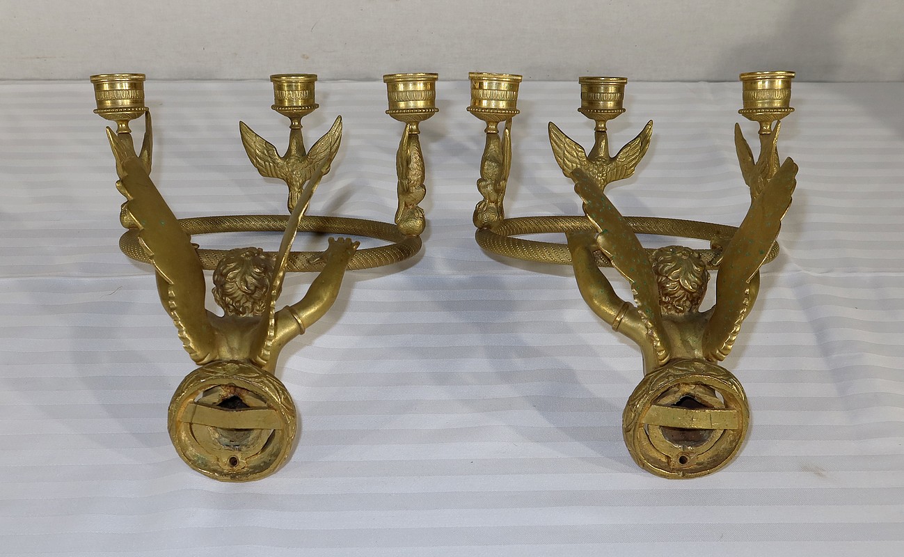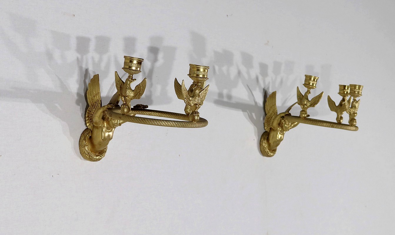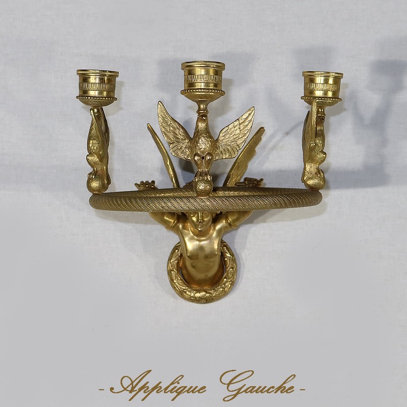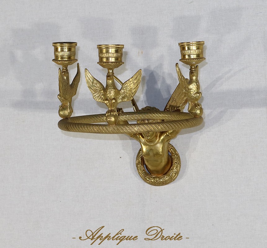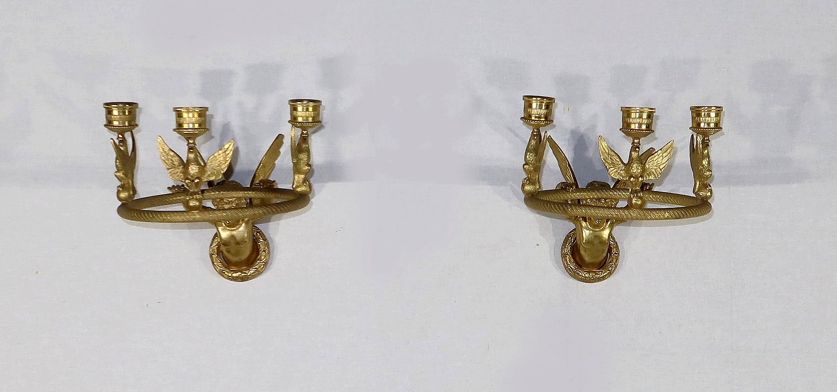 Magnifiques appliques en bronze doré délicatement sculpté datant de l’Empire.