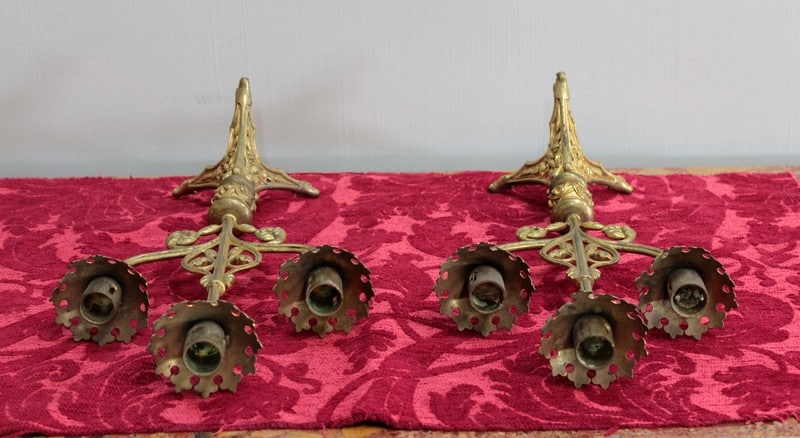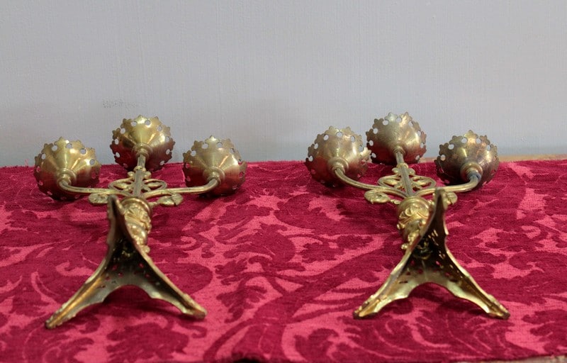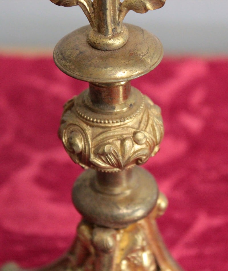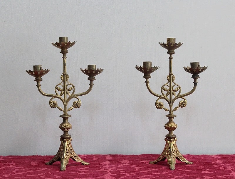 Paire de bougeoirs d’église en Bronze, de style Gothique.