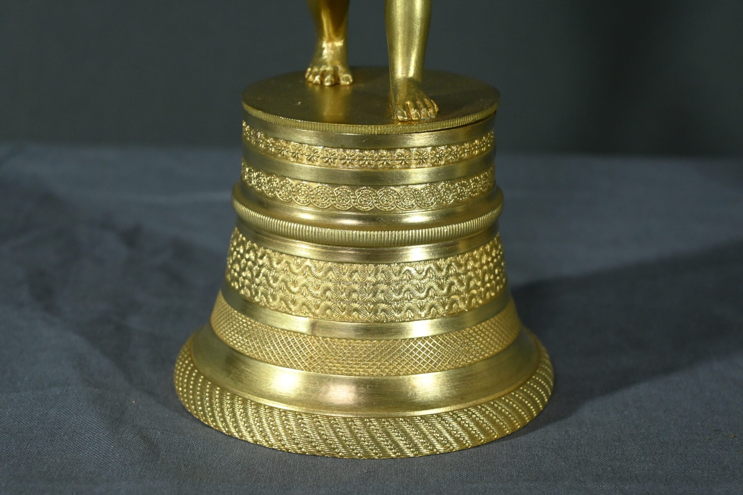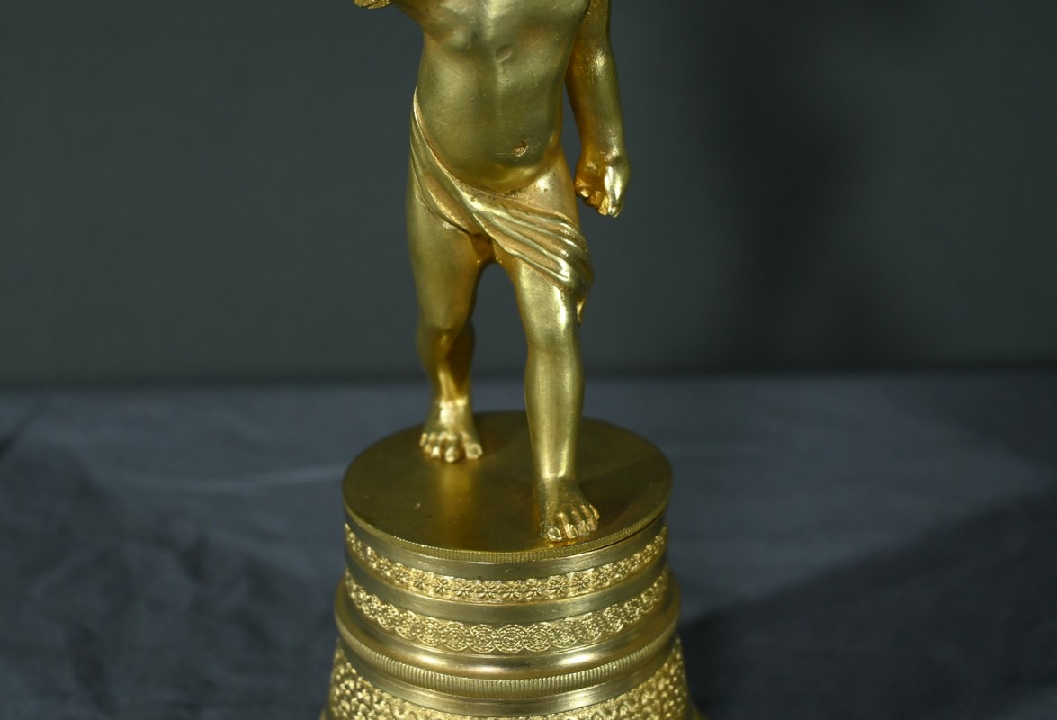 Les chérubins reposent sur des bases en forme de cloche, ornées de frises décoratives aux motifs variés.