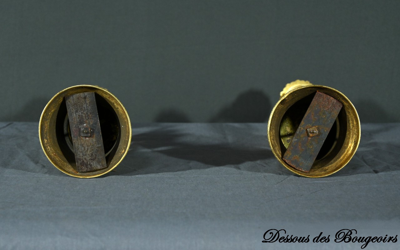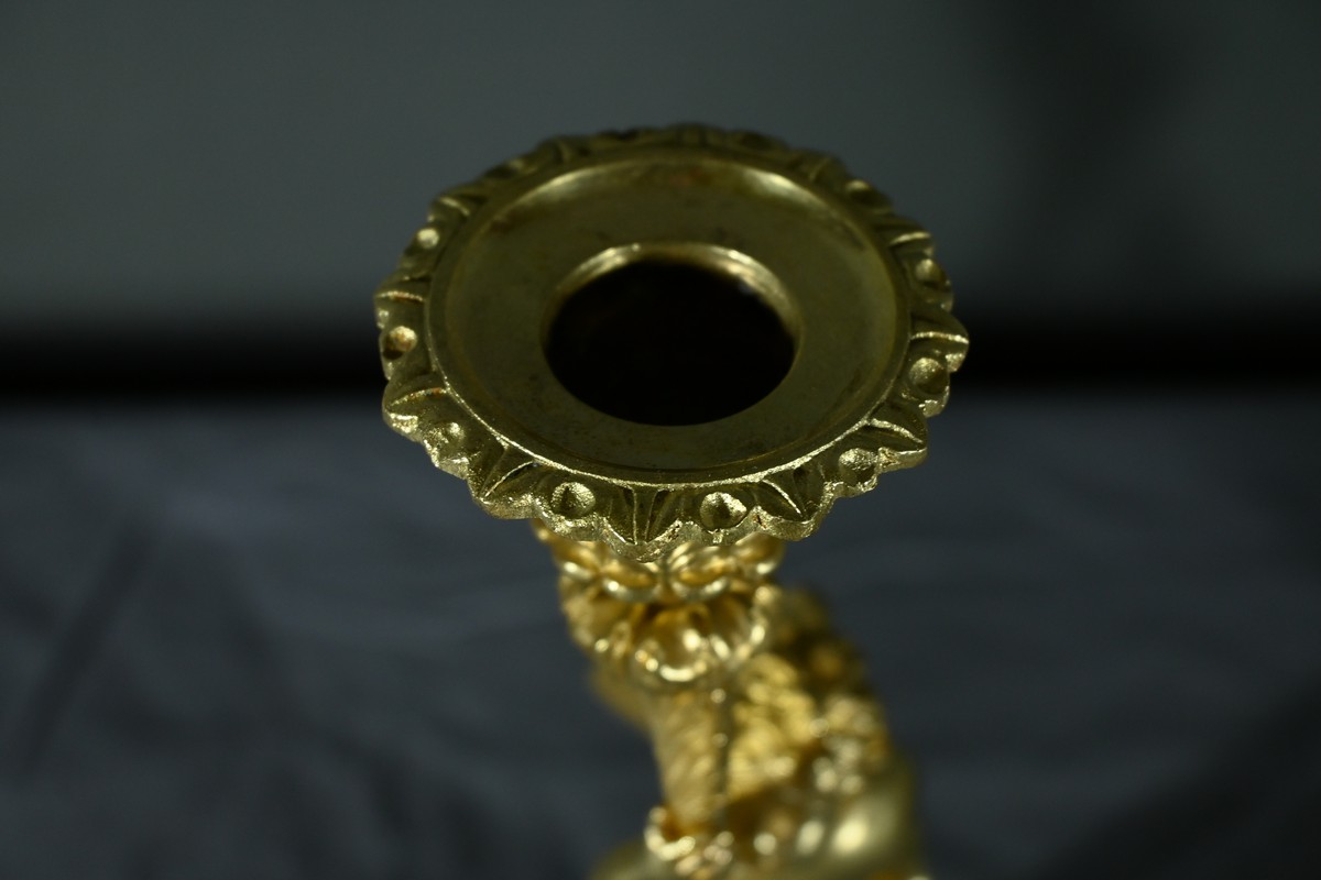 Cette paire de bougeoirs en bronze doré, datant du milieu du XIXe siècle, est un exemple exquis de l’artisanat de cette époque.