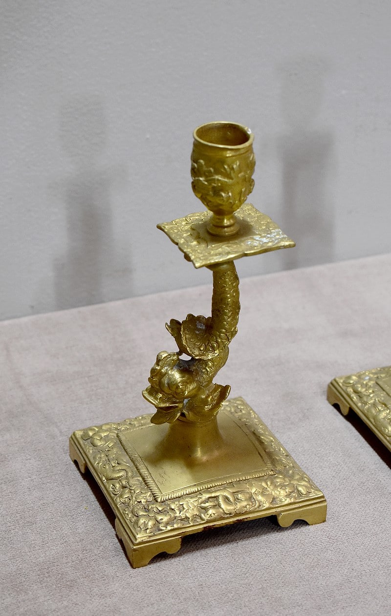 Paire de bougeoirs en Bronze doré.