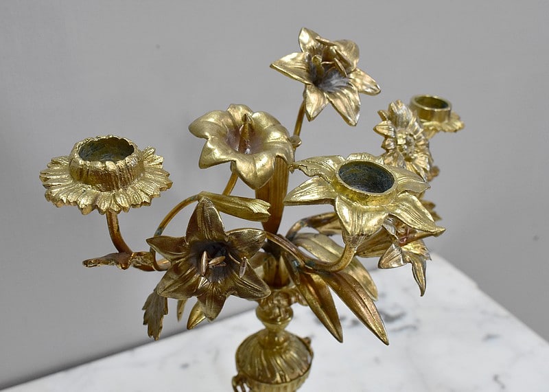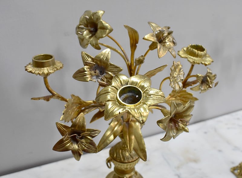 Les Lys, bougeoirs et feuilles en laiton ont été entièrement démontés et nettoyés.