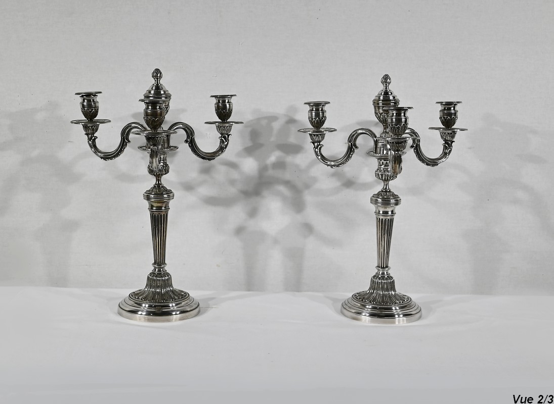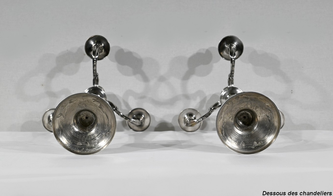 Paire de Chandeliers en Bronze Argenté – Fin XIXe