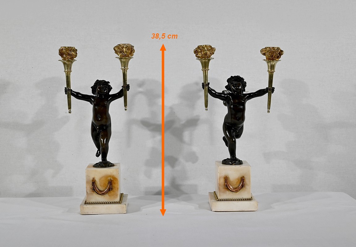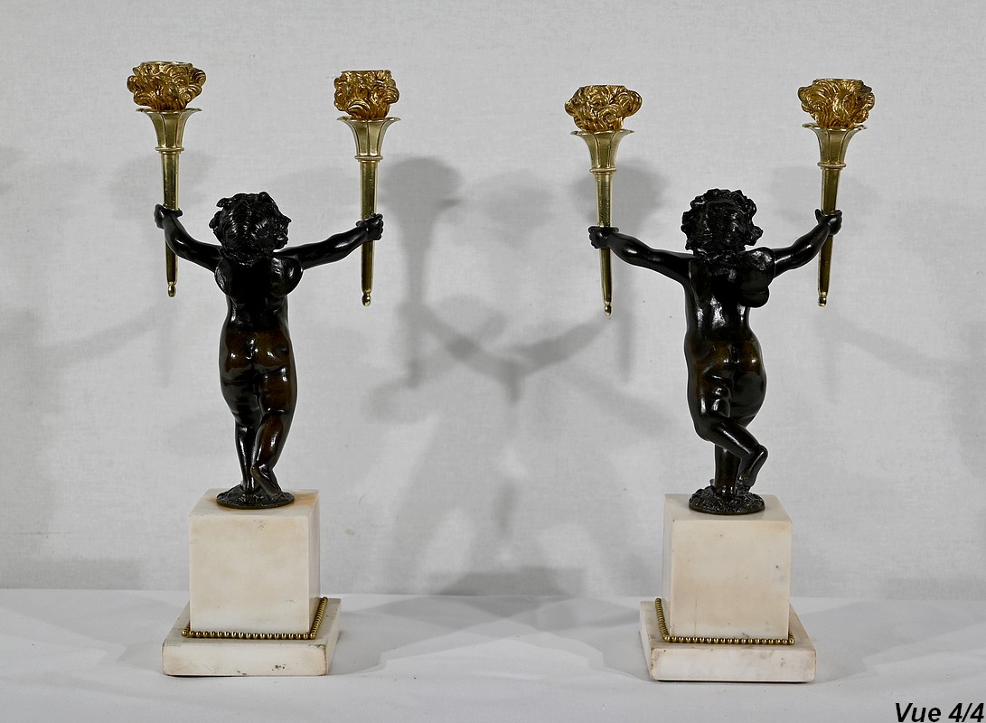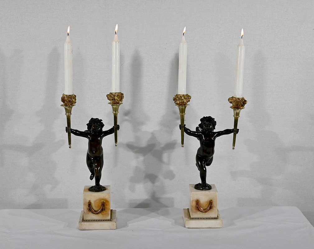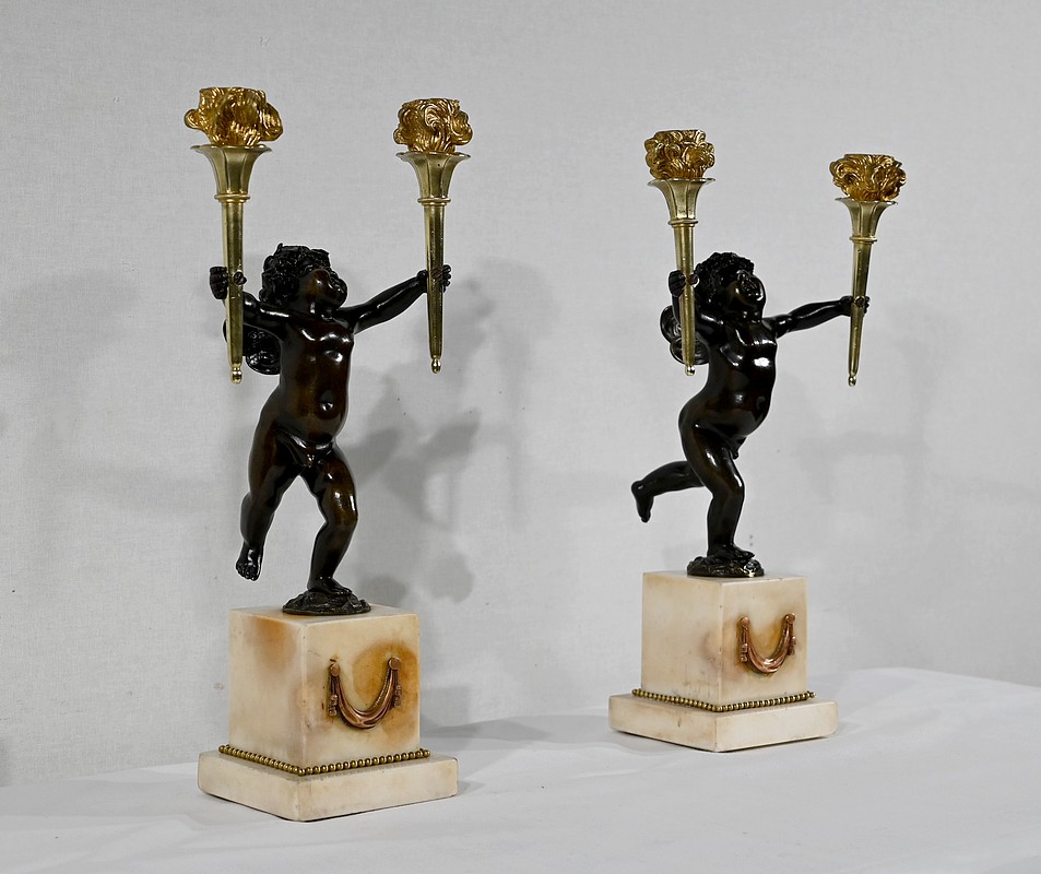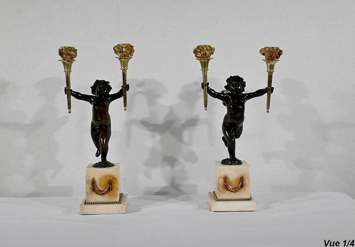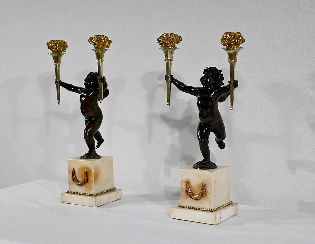 Paire de Chandeliers en Bronze et Marbre – 1ère partie du XIXe