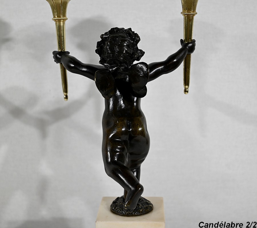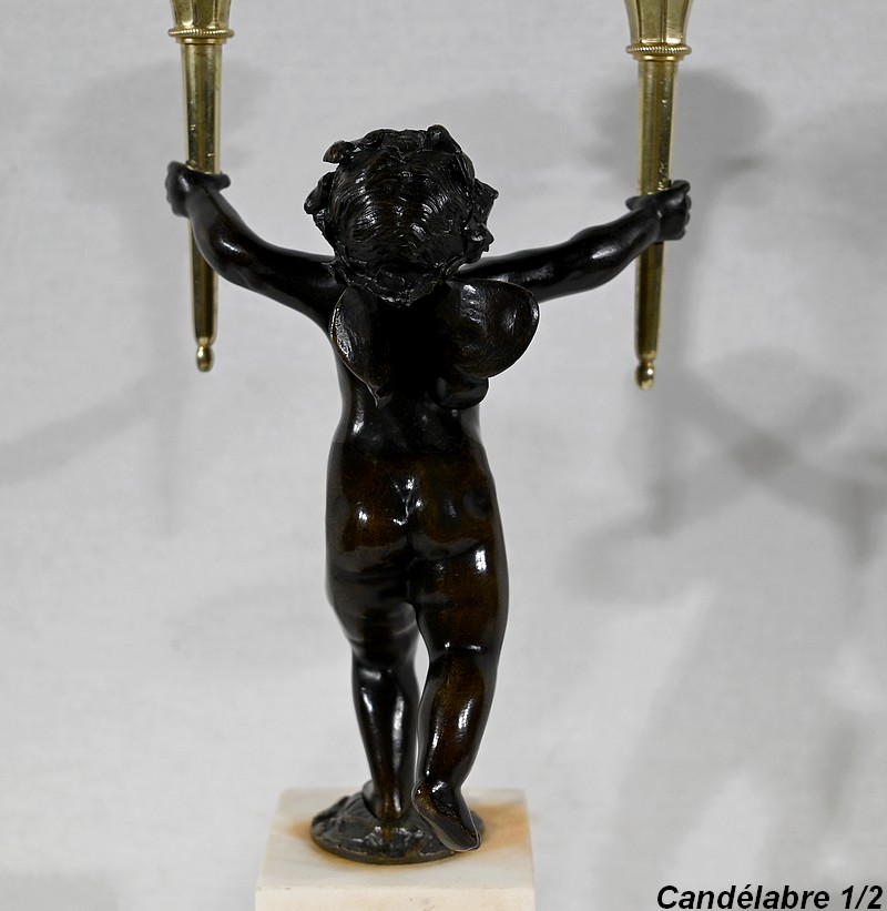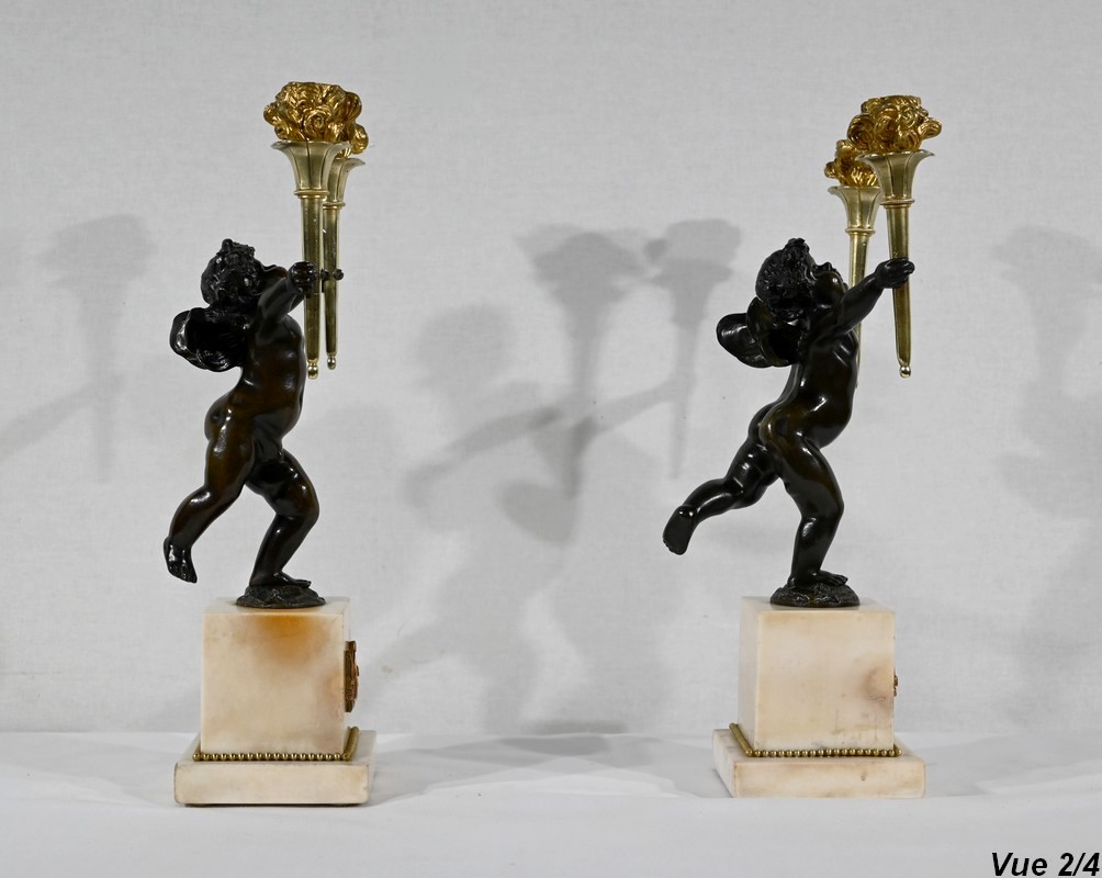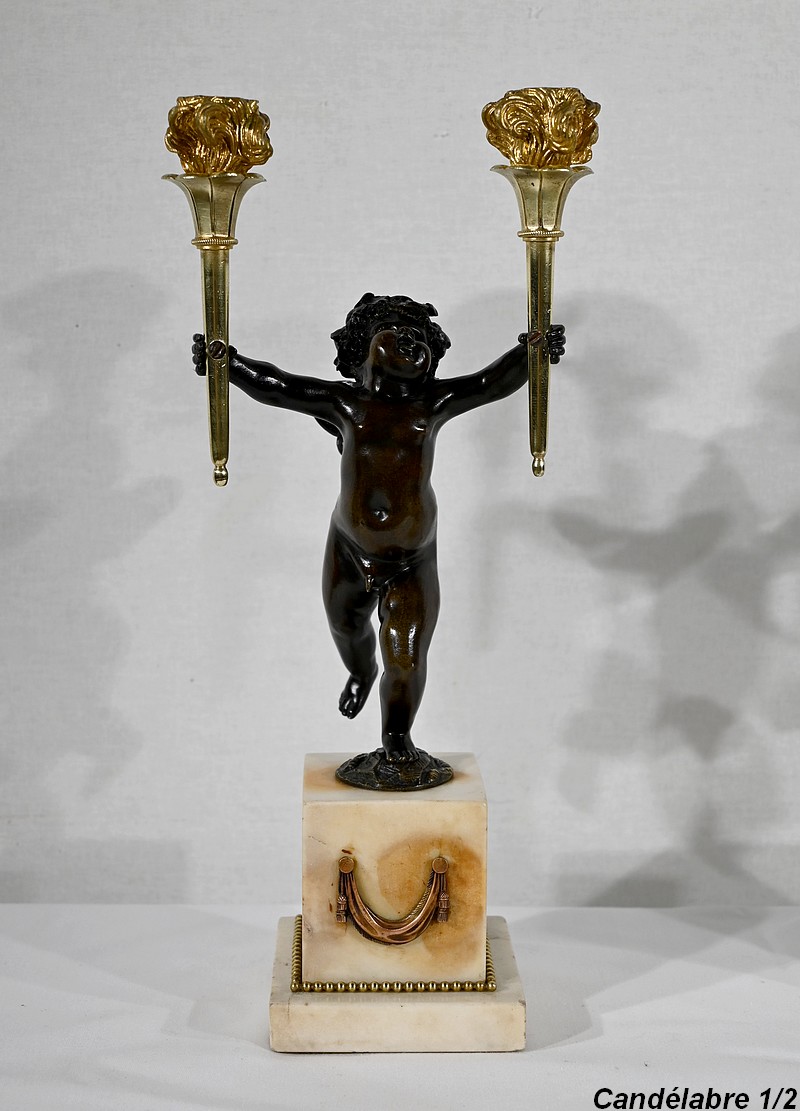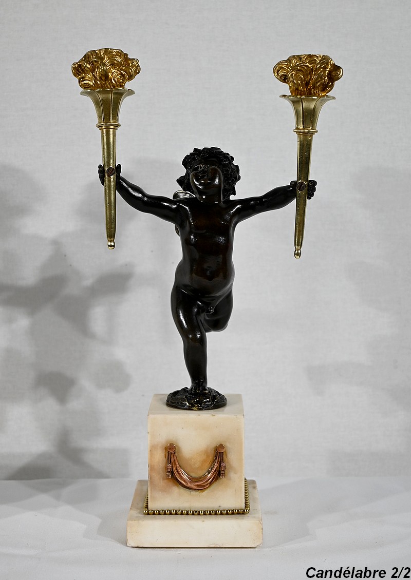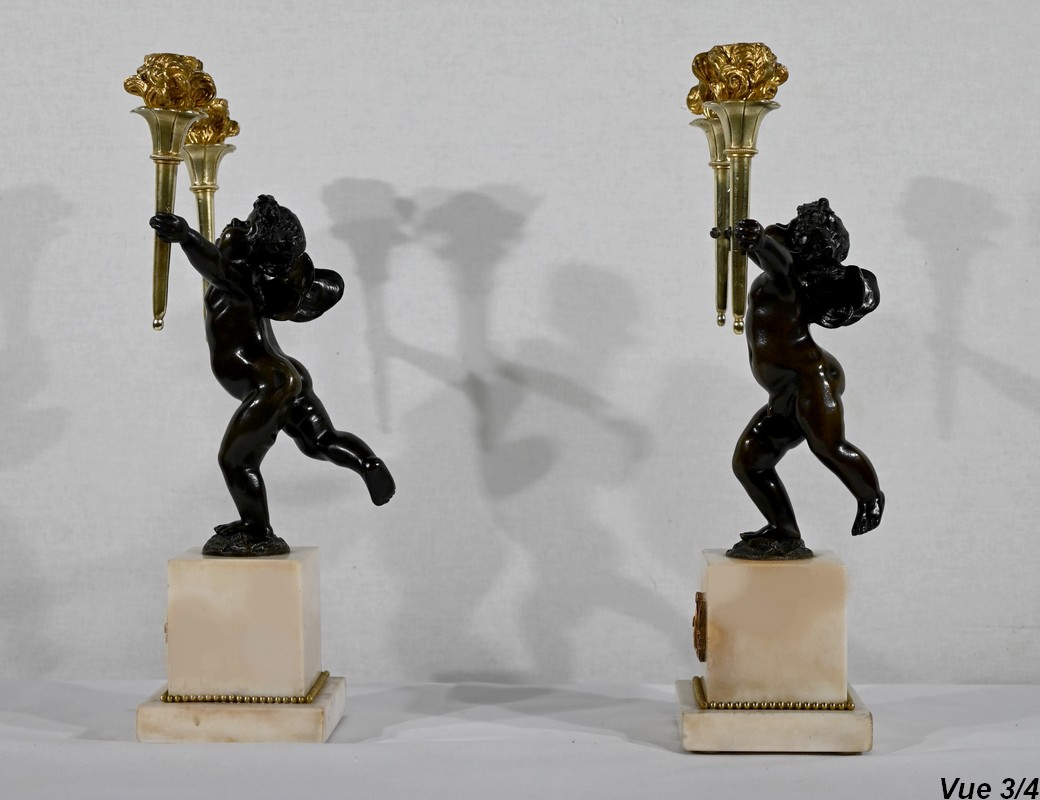Paire de Chandeliers en Bronze et Marbre – 1ère partie du XIXe