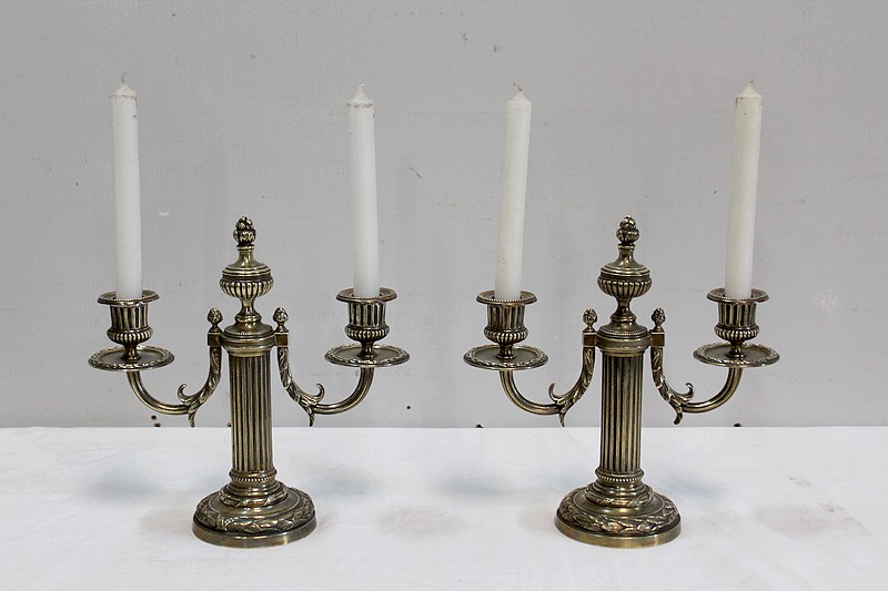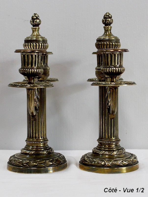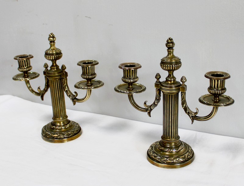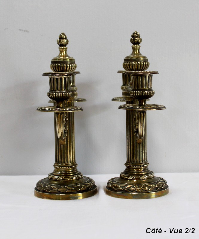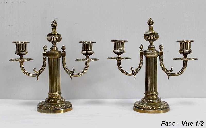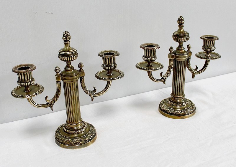 Paire de Chandeliers en Bronze, style Louis XVI – 2ème moitié du XIXe