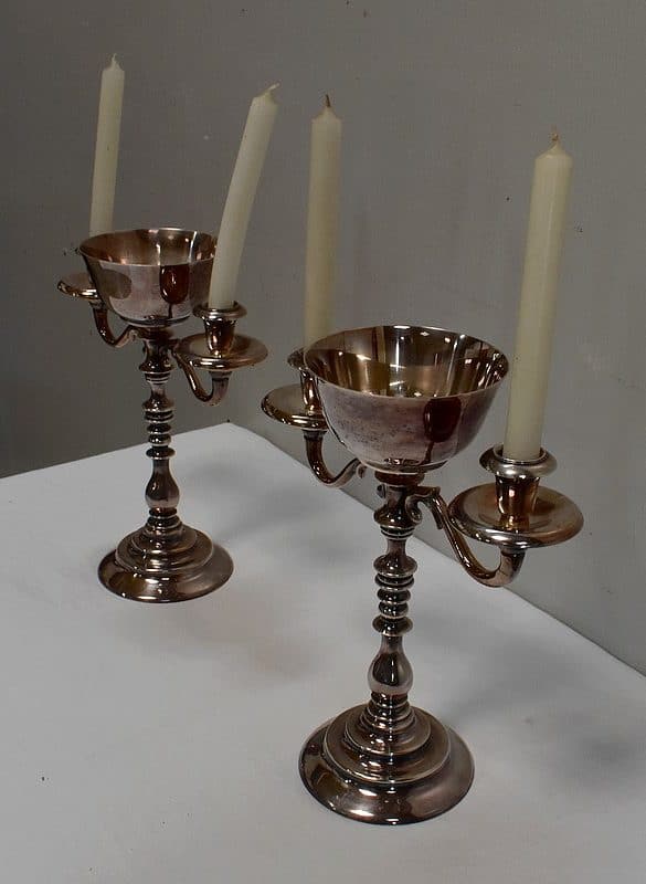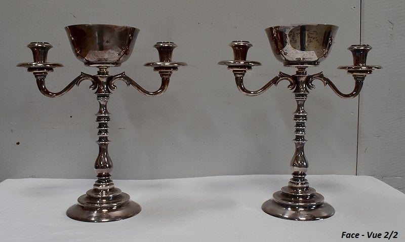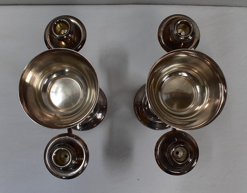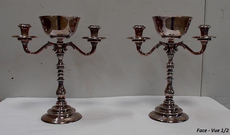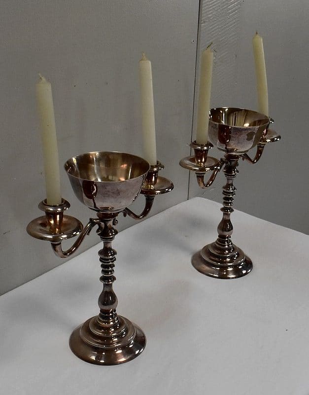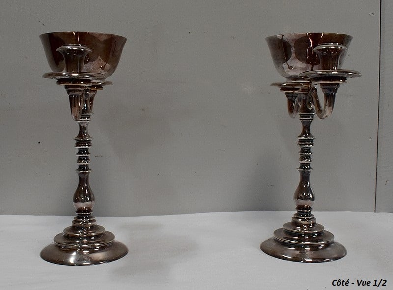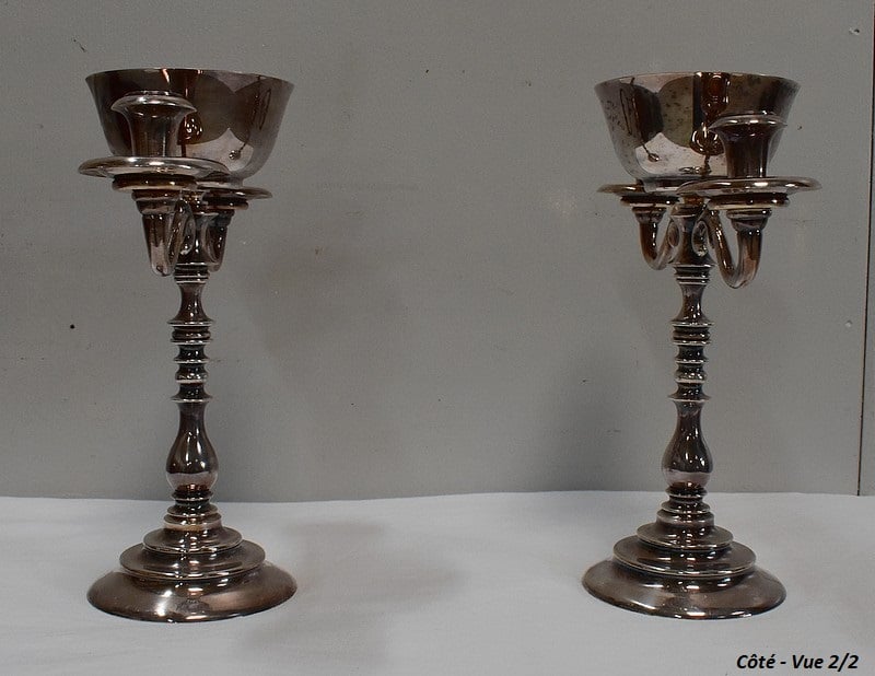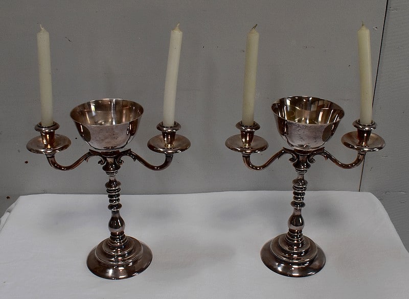 Paire de Chandeliers en Métal Argenté – XXe