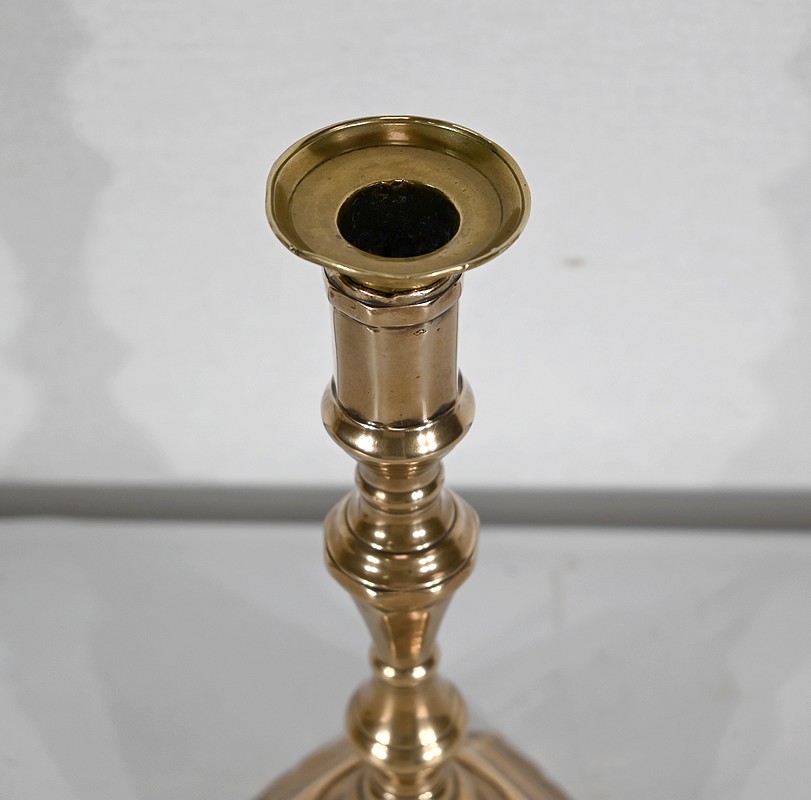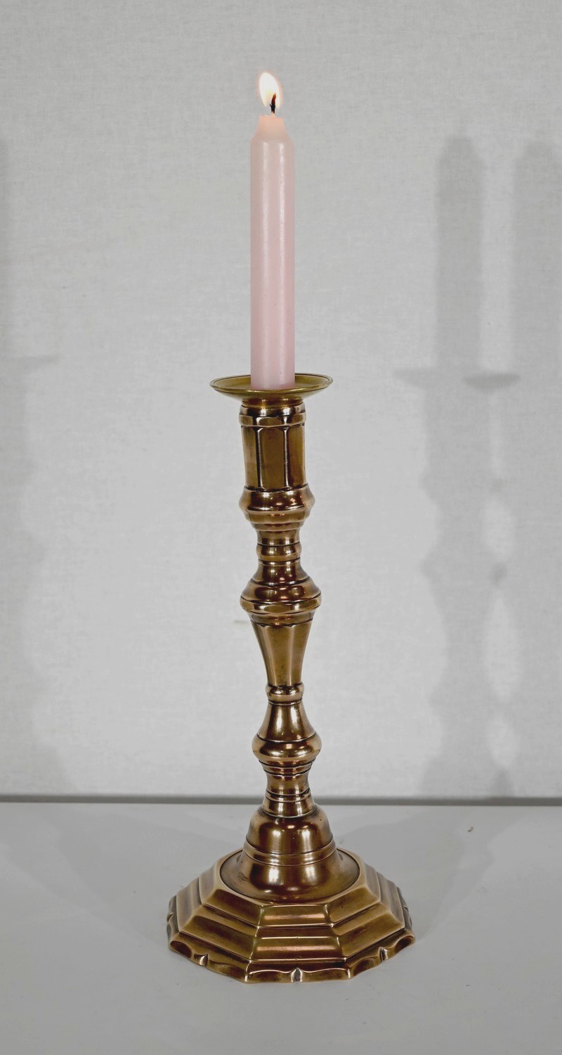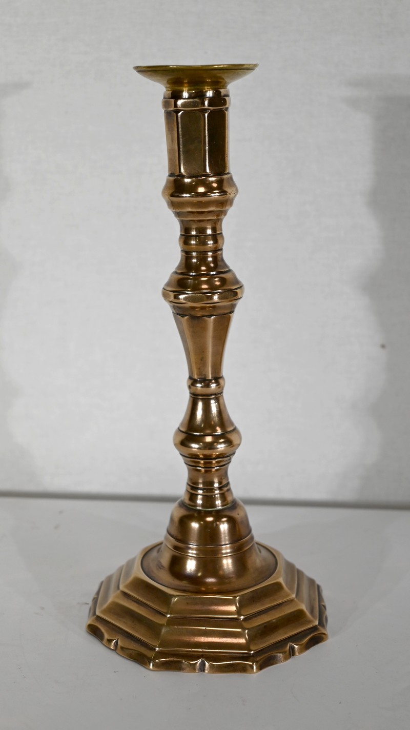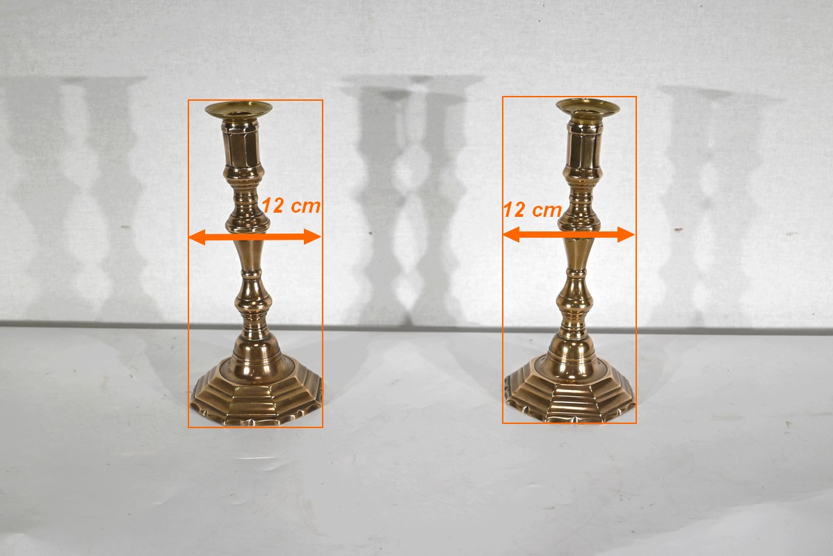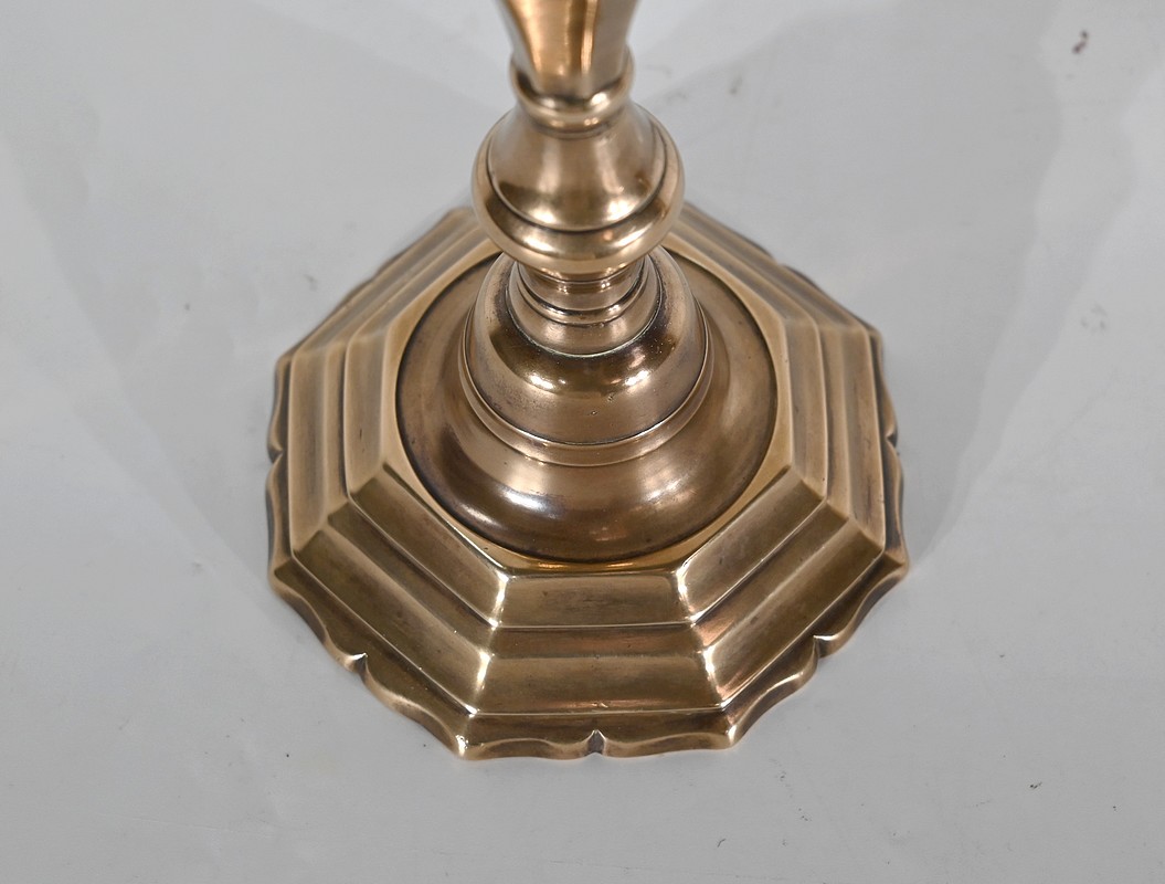 Ensemble de deux chandeliers en bronze sobrement dorés.