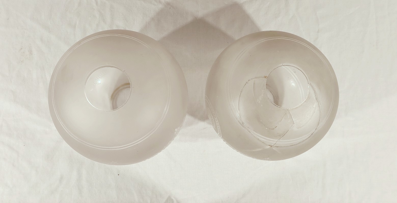 État d’usage. Un globe cassé recollé.
