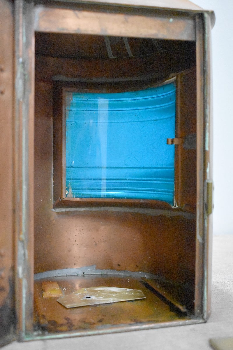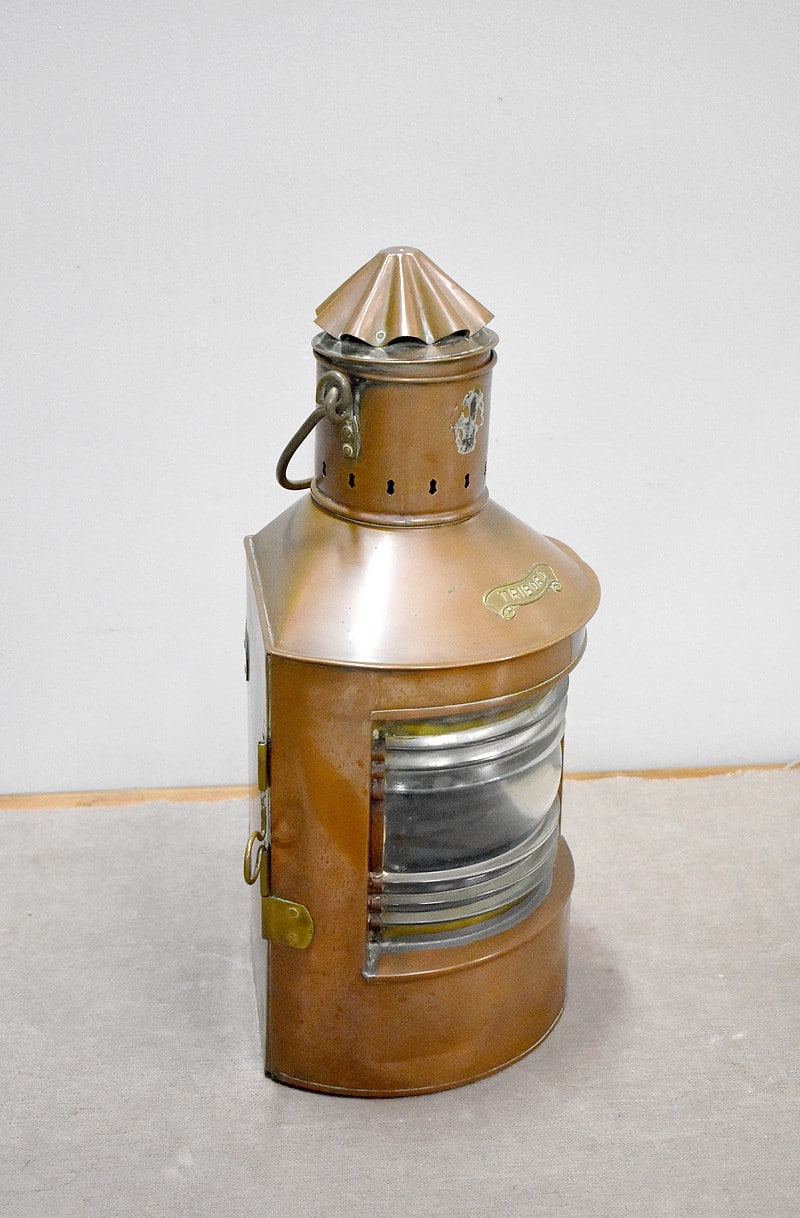 Petite lanterne de marine d’angle Tribord en cuivre.