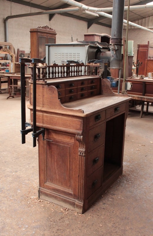 Depuis 50 ans, chaque pièce de mobilier est minutieusement restaurée avec passion dans notre atelier d’ébénisterie.