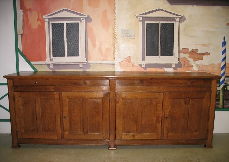 Long Meuble de Boiserie en Chêne clair à 4 portes et 2 grands tiroirs.