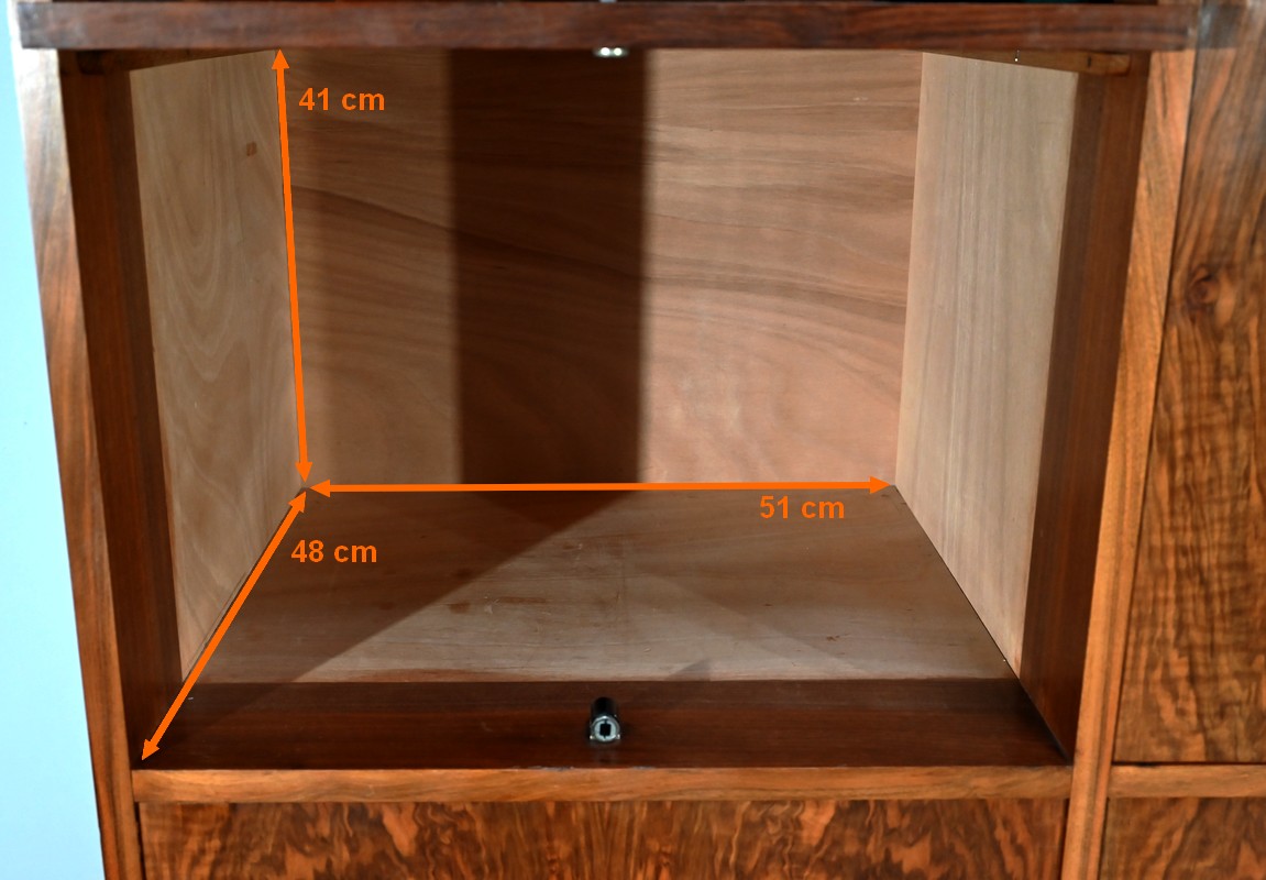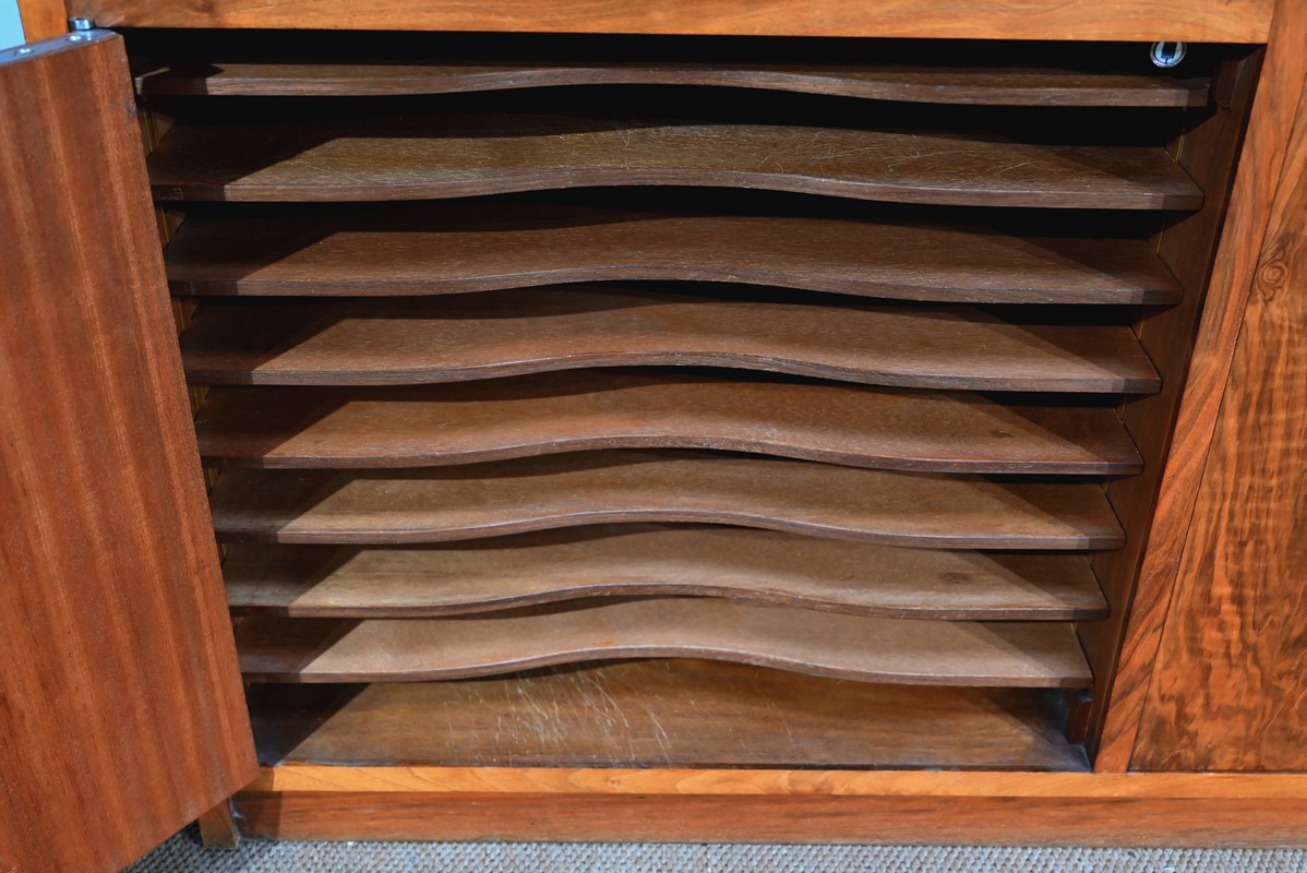 Ce meuble sur mesure fabriqué par un ébéniste renommé nantais, plaira notamment pour sa capacité importante de rangement, la beauté de ses essences et sa grande qualité de fabrication.