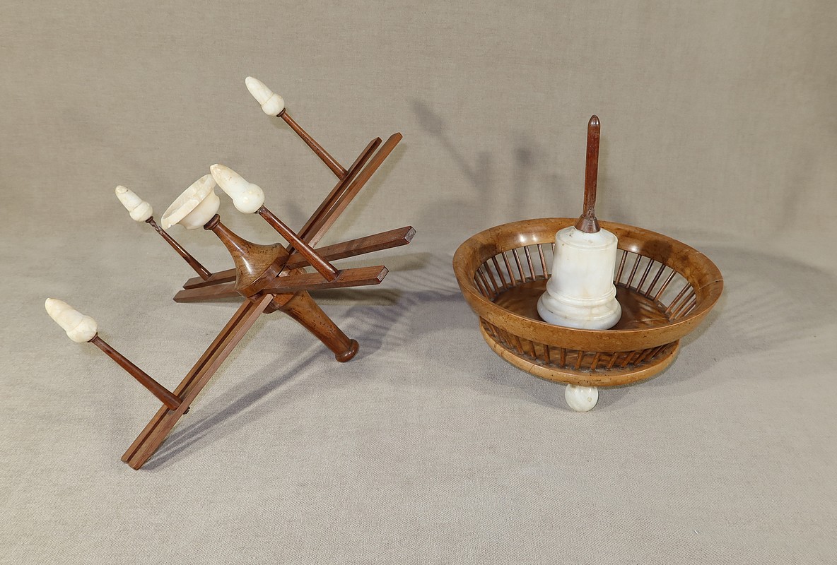 Petit Dévidoir à laine en bois et albâtre – Début XIXe
