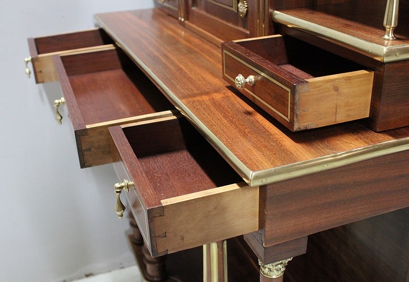 Depuis 50 ans, chaque pièce de mobilier est minutieusement restaurée avec passion dans notre atelier d’ébénisterie.