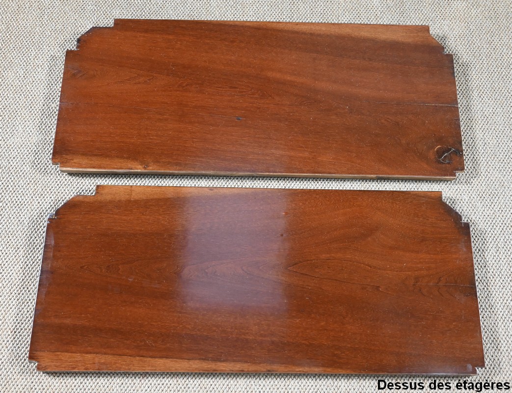 L’intérieur en acajou se structure de deux étagères réglables sur crémaillères.