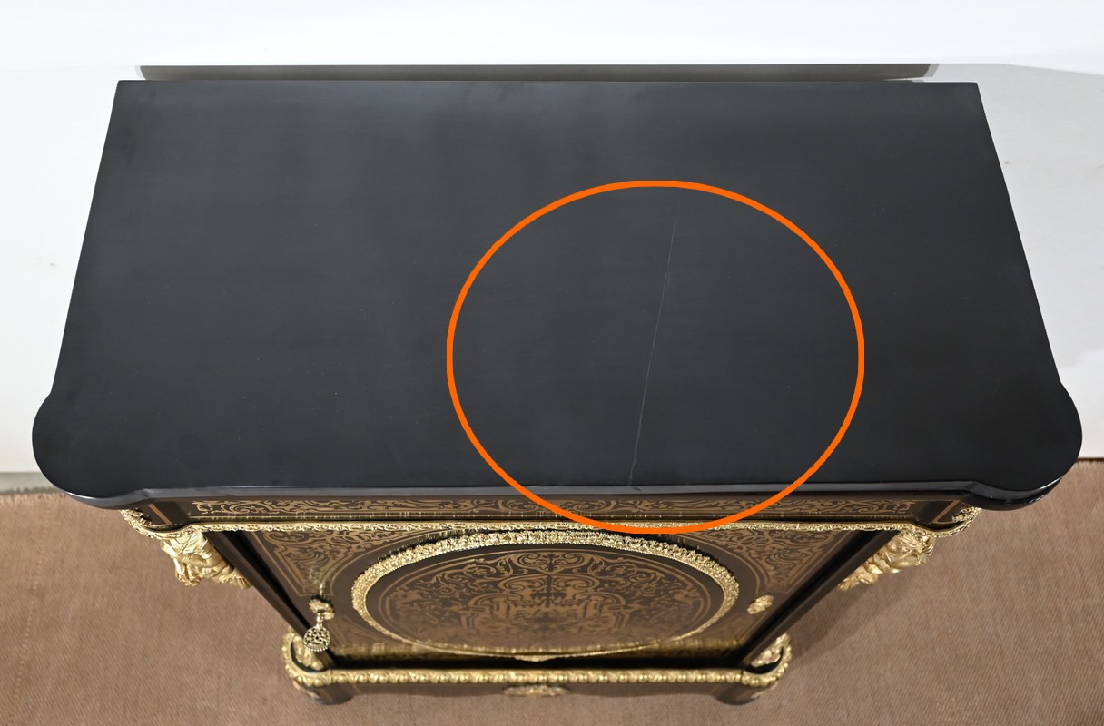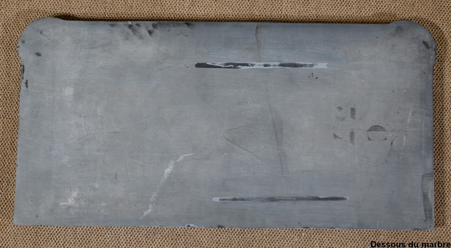 Parfait état après restauration dans notre atelier. Réparation postérieure du marbre. Finition vernis tampon à l’extérieur et gomme laque à l’intérieur