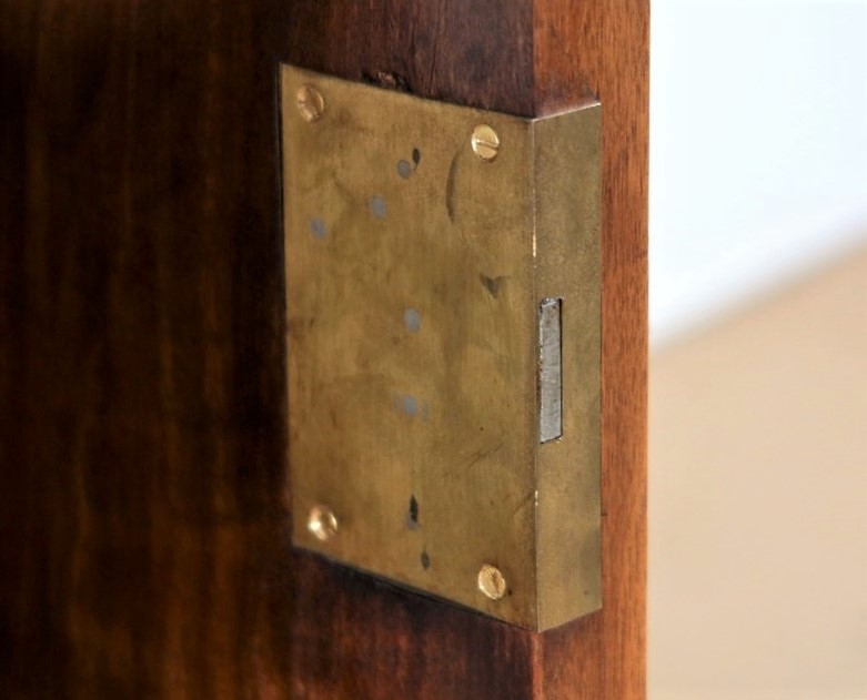 L’intérieur de ce mobilier en acajou est doté de deux étagères réglables sur crémaillères.