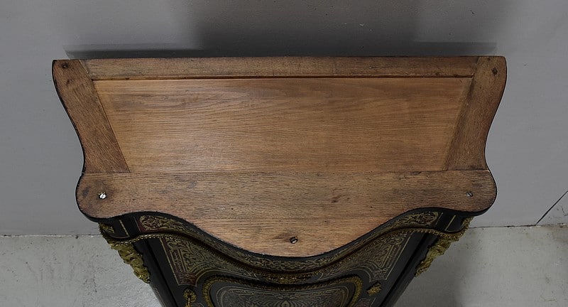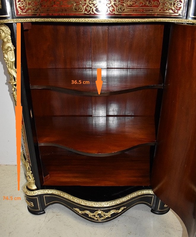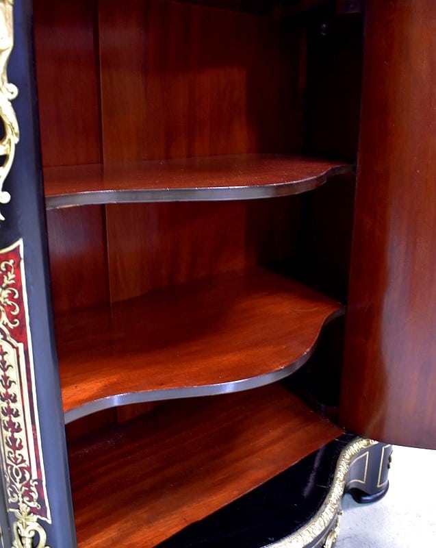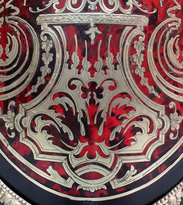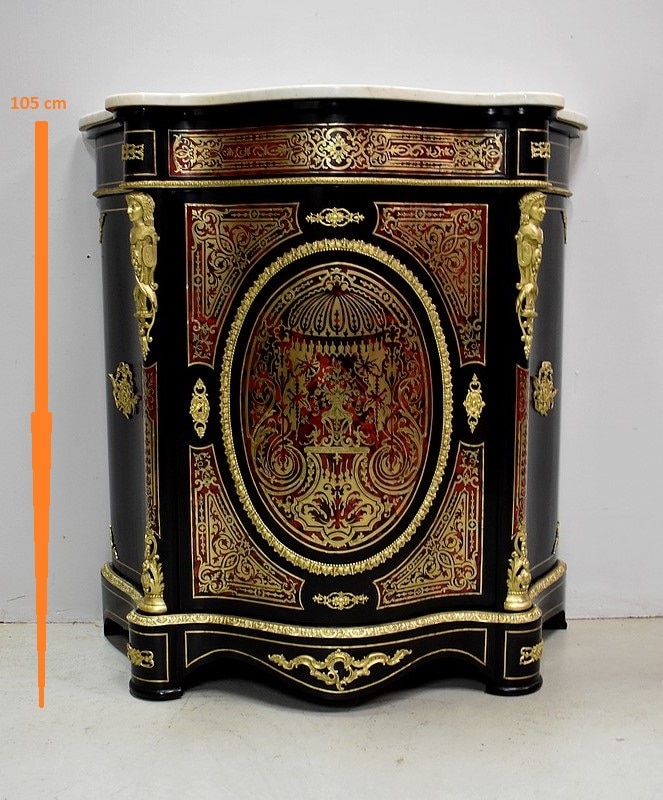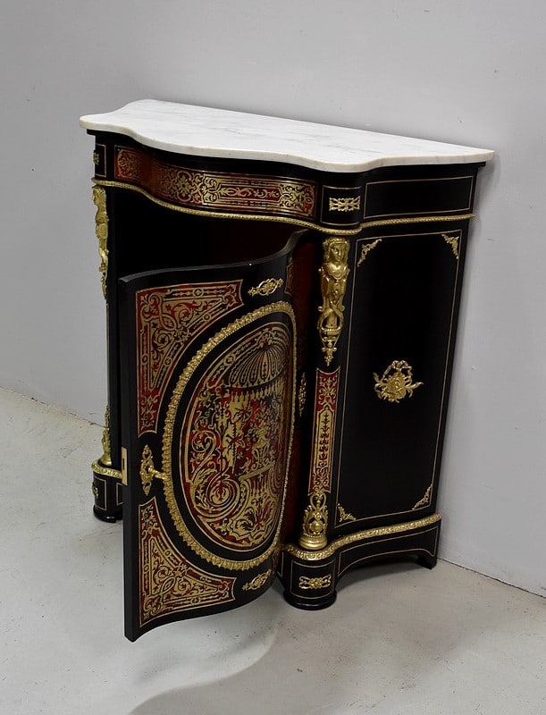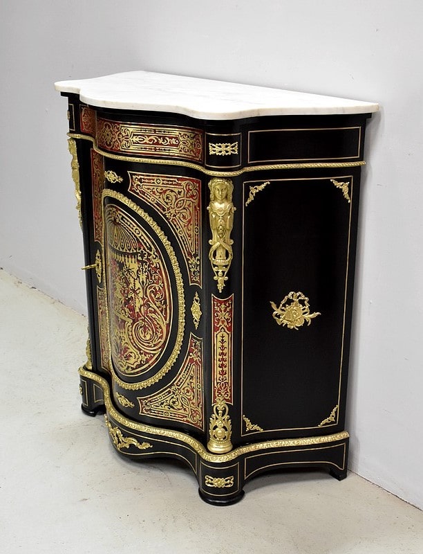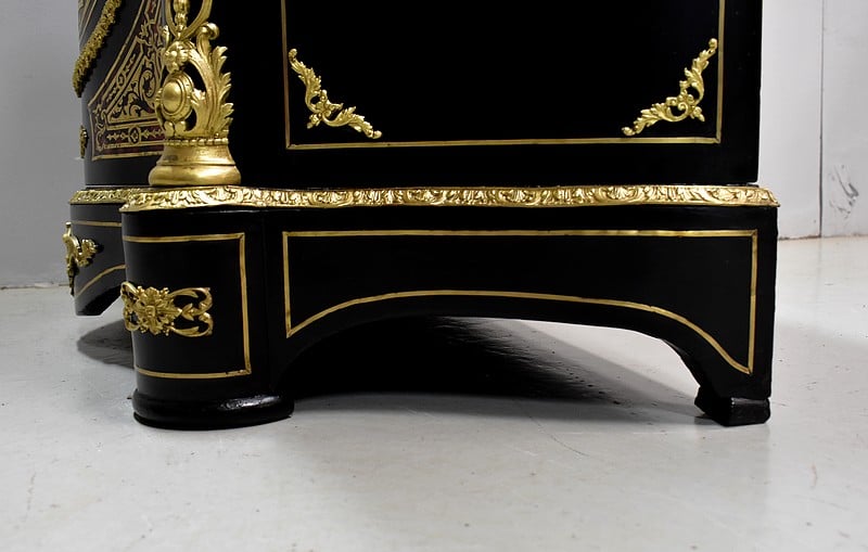 Meuble à hauteur d’appui en Marqueterie ‘Boulle’ d’Écailles de Tortue Rouges et de laiton découpé, sur fond de Poirier noirci.