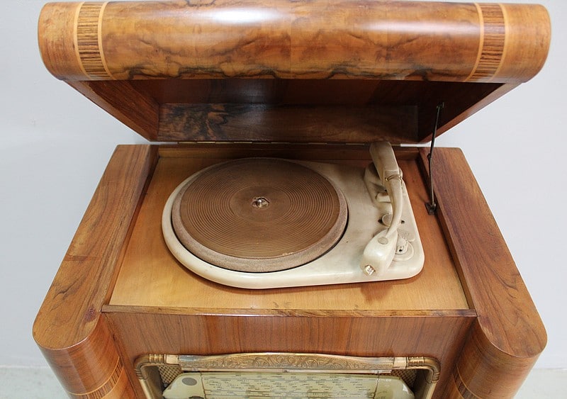 Radio et tourne-disques en l’état.