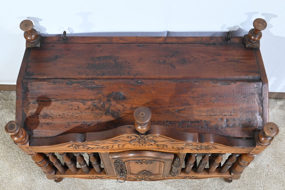 Cette panetière, témoin d’us et coutumes d’antan, apportera une touche traditionnelle à votre cuisine, à défaut, elle fera un ravissant et original espace de rangement.