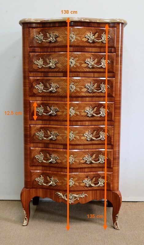 Semainier en placage d’Amarante et Marqueterie, style Louis XV – Début XXe