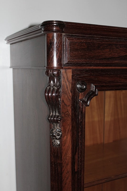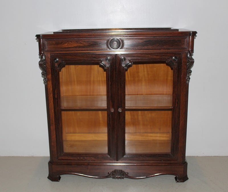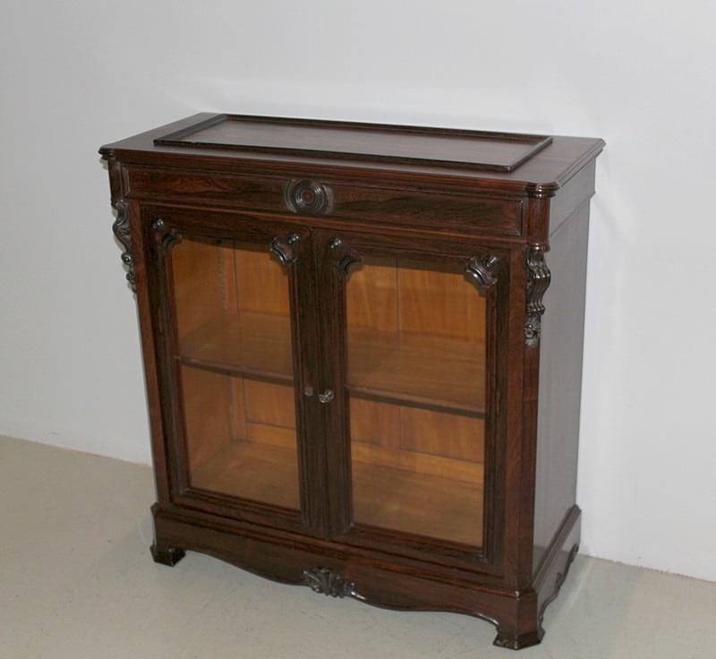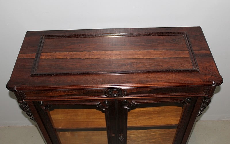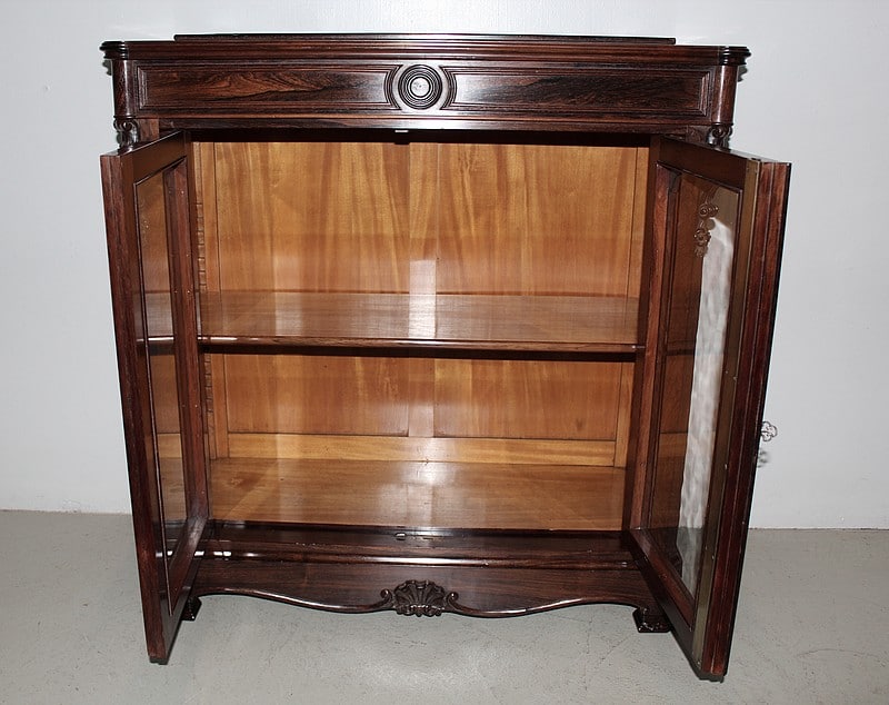Petite vitrine basse NAPOLÉON III en placage de palissandre, ouvrant à 2 portes vitrées.