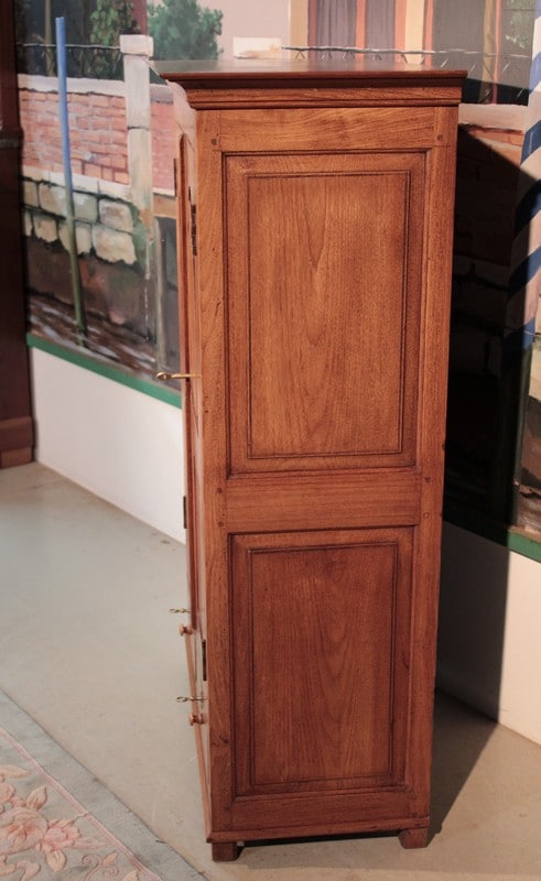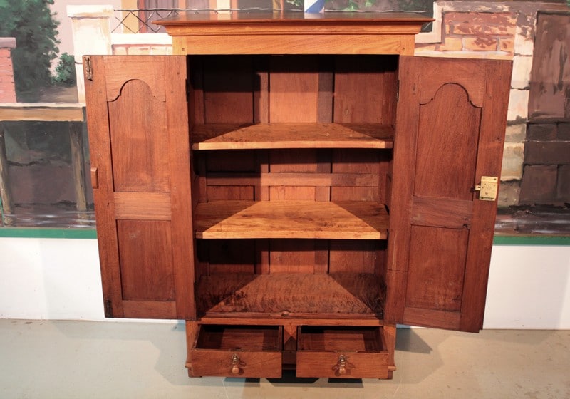 Petite Armoire en teck dans le goût Louis XIV, ouvrant par 2 portes et 2 tiroirs en partie basse. L’intérieur est garni de 2 étagères. Région de Pondichéry (Inde) XIXe siècle.