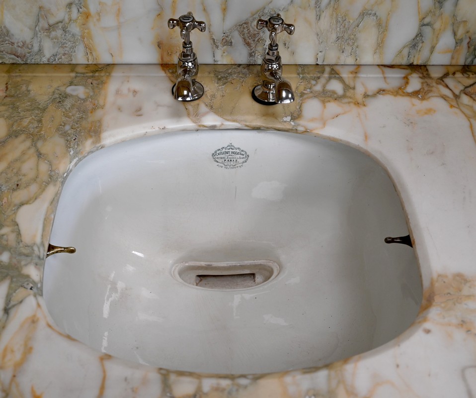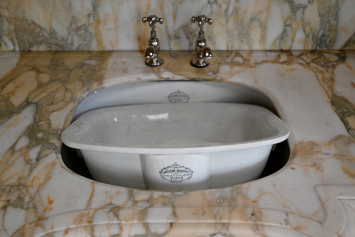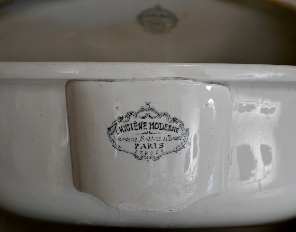 On notera la présence sur et sous la vasque de la marque « Hygiène Moderne Paris ».