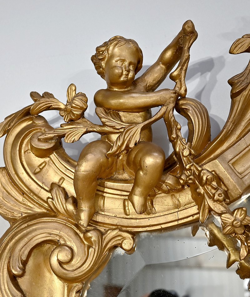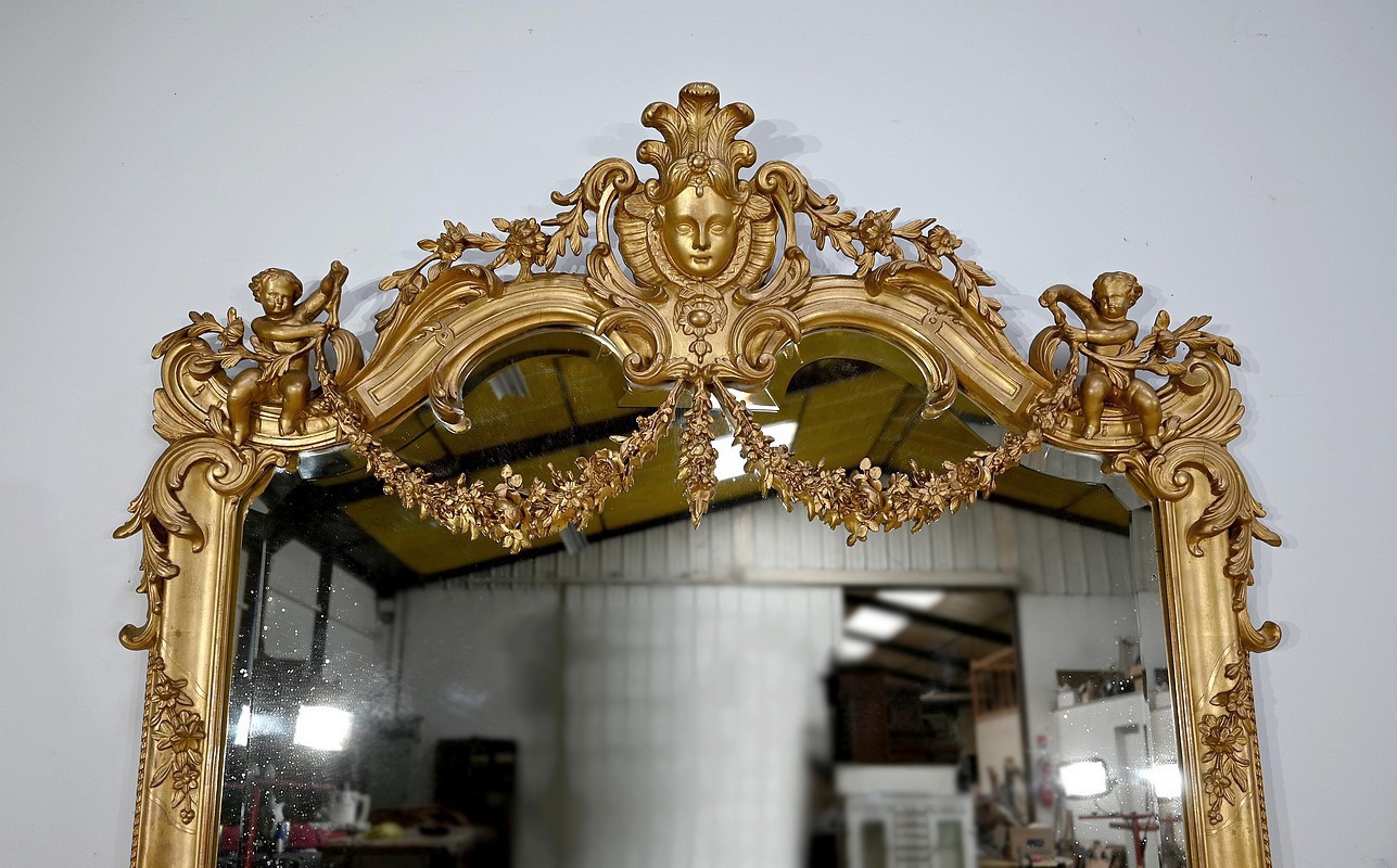 Important Miroir en Bois Doré, style Louis XIV / Louis XV, époque Napoléon III – Milieu XIXe
